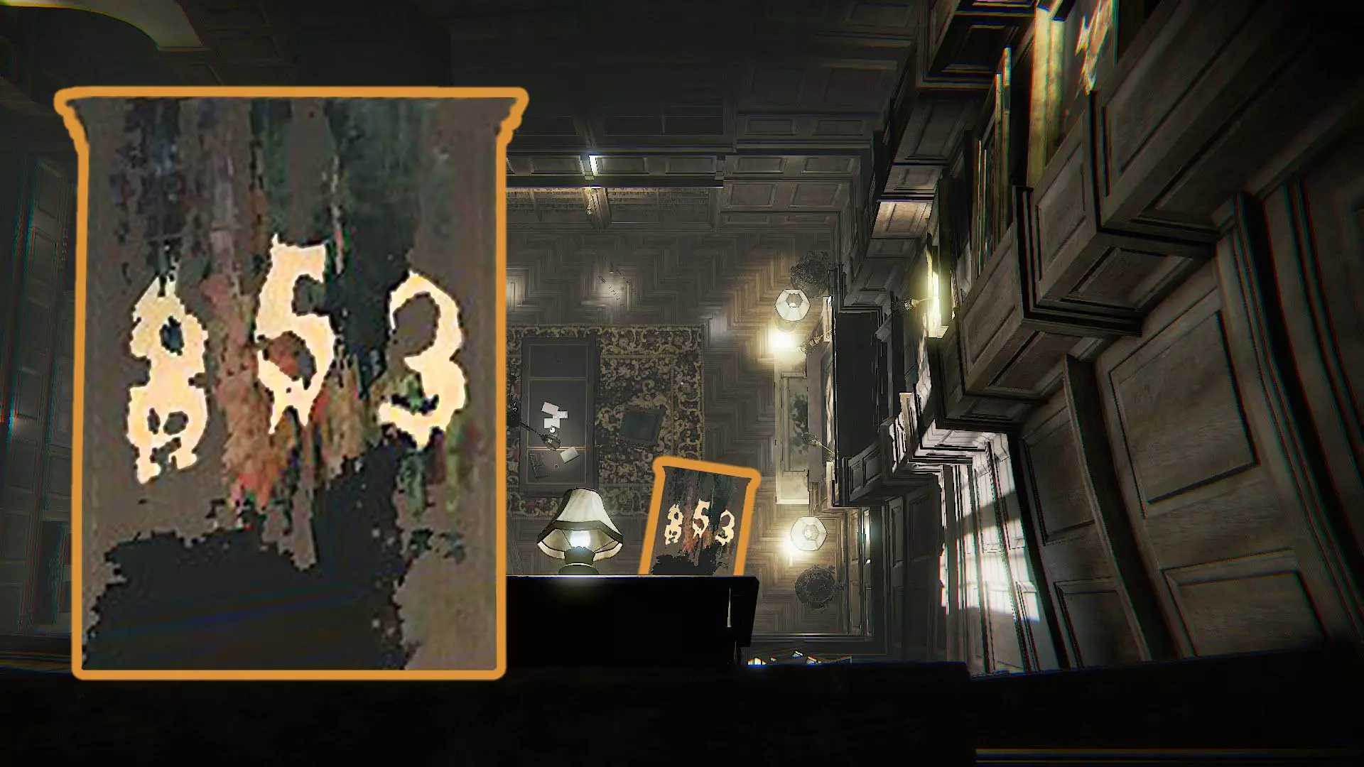 保险箱 游戏结局 密码:00、40、20。 随着你在需要寻找多个筹码的房间中不断推进,保险箱及其密码都会逐渐揭晓。在第一张图片中,你可以看到左侧有一个门槛(那里会显示保险箱的数字),图片中央还有另一个门槛(那里就是保险箱)。要让保险箱出现,你需要一直推进,直到留声机变成你在图片中看到的那幅画。