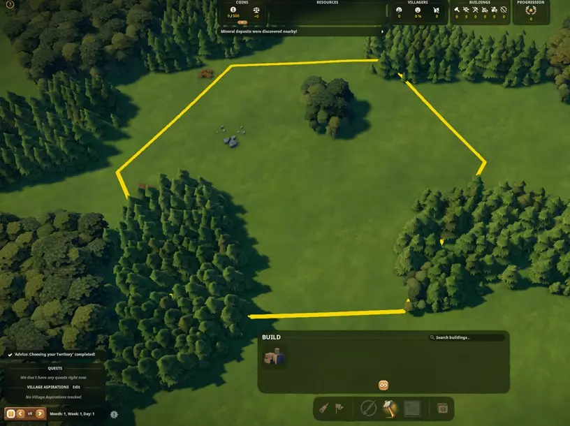 然后我选择了第二个六边形地块,它出现得相当早,就在第一个地块的左边(不是因为矿物——游戏初期鱼类比矿物更重要——而是因为森林)。伐木工人小屋和锯木厂已经在这个方向了。