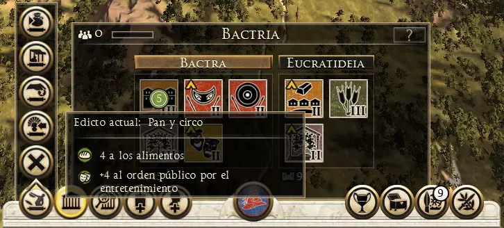 我们不应让空地闲置或未经开发,因为两回合后,这些空地会变成贫民窟。贫民窟会消耗大量食物,还会对公共秩序造成惩罚。同时要注意,清除这些贫民窟需要花费金钱和一个回合,才能将其重新改造为空地。 每个定居点中建造的建筑会为整个省份带来增益。 省份的首府是唯一拥有最多6块空地的定居点,其余定居点最多有4块空地。此外,我们必须注意,并非所有定居点都能建造相同的建筑,因为存在专属于首都和次级定居点的建筑。 需要注意的是,我们可以同时建造多个地块,不会有任何问题。 政令 控制一个省份后,你可以使用提供巨大加成的特殊立法。为此,只需选择第一个选项并选择你想要使用的政令。政令将在下一回合生效,并持续有效,直到你失去该省份的控制权或大量领土。