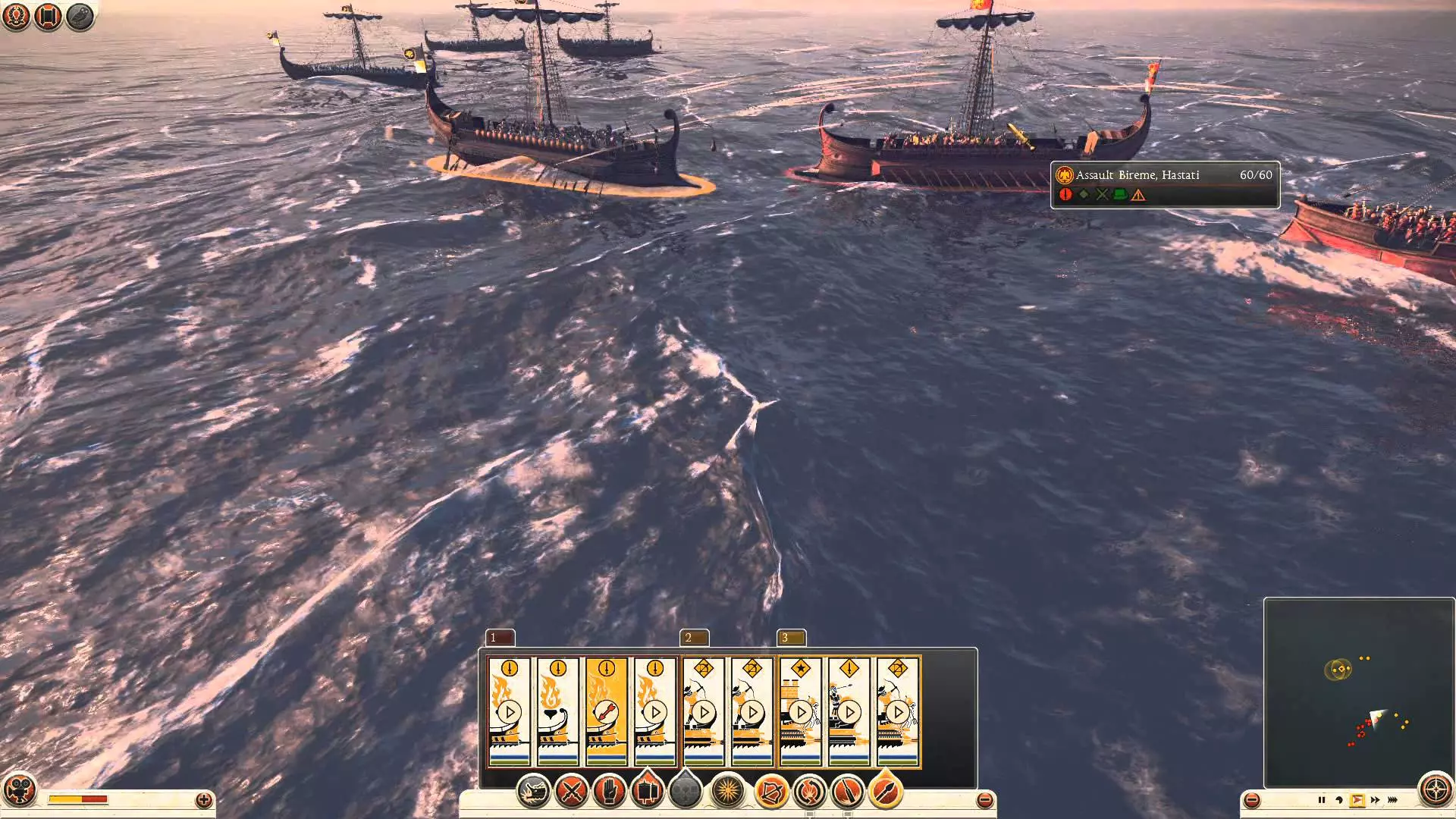 在屏幕右下角可以找到战场地图。地图下方会显示距离战斗结束剩余的时间,以及游戏速度控制按钮。右下角还可以切换到战术模式(Tab键),该模式会显示战场的战术视图。