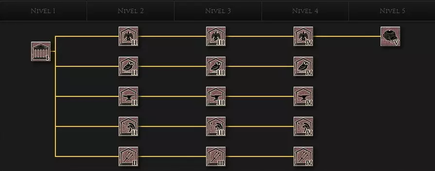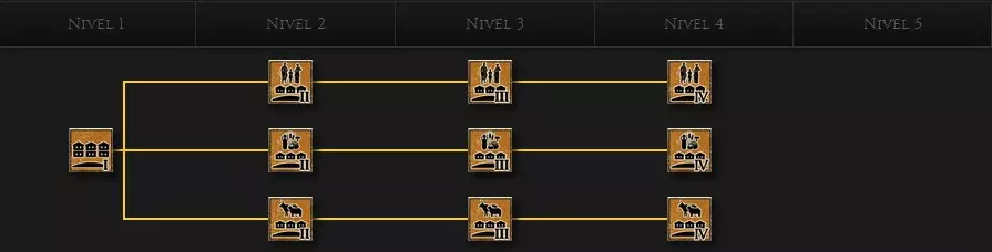 城市中心 该建筑链有两种变体,一种用于省会,另一种用于其他定居点。这些建筑与神庙类似,几乎在所有方面都能提供加成。 首都