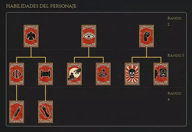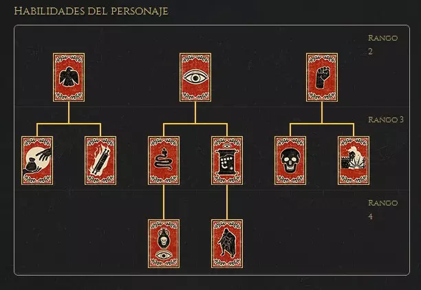 以下是该角色的技能树及其效果和行动: 行动 友好 省份 提升秩序。 提升对狂热行动的防御。 军队 提升将军的狂热值。 提升所有单位的经验值。 敌对 省份 在民众中引发混乱。 降低对狂热行动的防御。 军队 权威:降低士气并增加军队维护费用。 狡诈:降低军队的近战攻击和投射技能。 狂热:对军队中的特定单位造成伤害。 定居点 权威:降低公共秩序。狡诈:对定居点内所有建筑造成少量伤害,并减少奴隶数量。 狂热:对单个驻守单位造成大量伤害。 将领 权威:击杀目标。 狡诈:击杀目标。 狂热:击杀目标。 特工 权威:说服目标不再为其派系效力。 狡诈:说服目标不再为其派系效力。 狂热:说服目标不再为其派系效力。 技能树