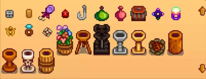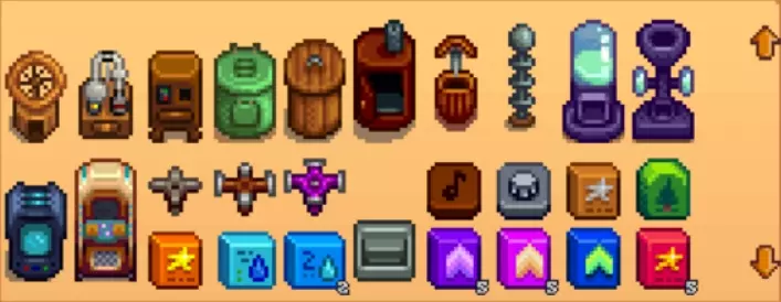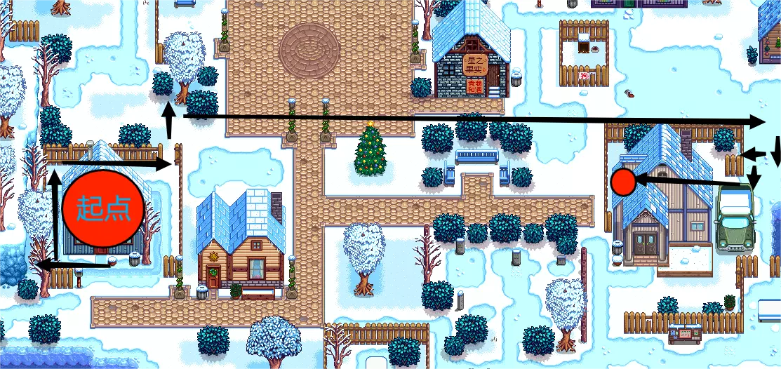 6.游戏中随处都有可能遇到一种叫远古斑点的东西,具体样子如右图,用锄头去挖它可以获得某些奖励,其中包括了一些能提交给博物馆的古代物品,甚至是一些第一年获得不到的作物种子。冬季出现的更多,而且冬季的部分采集物需要从远古斑点获取。 7.同时也是个人认为最重要的:游戏是愉快享受的,成就是不会错过的,切勿给自己上太多完全没必要的压力!哦好吧其实只有一组互斥成就无法同时达成,除非借助备份存档大法,反正就在本节下面会介绍的。 春季熟悉熟悉玩法和地图分布,走走法师塔和社区中心剧情,种种地钓钓鱼探探矿井,认识认识村民,放轻松享受。 在第1年春季第5日后初次在晴天8:00-13:00进入社区中心时会触发过场剧情,与社区中心内的发光方块互动,会在次日收到前往法师塔的信件即可前往法师塔(法师会使玩家听得懂祝尼魔的语言,并至此开始社区收集包的任务,提交社区收集包的进度可以打开背包点击右上角那个小按钮以查看)。 但是呢,如果我们能做到尽快抵达耕种8级,美滋滋的挣钱计划就可以执行了。而在抵达耕种3级时解锁树液采集器配方,记得多造几个都摆在橡树上,我们的挣钱大计需要大量的橡树树脂;当然其它种类的树也可以放,比如枫树收集的枫糖浆。农耕5级时建议点“农耕人”技能。 春季种植甘蓝是最适合增长耕种经验的,无论如何,春季多种地都是相对更推荐的。 第1年春季第2日,收信并在下午5:00前去钓鱼小屋(小镇南侧海滩)可获得竹鱼竿。钓鱼3级解锁蟹笼的制作配方,有条件可以放几个在河边和海边,需要提前放鱼饵,有些蟹笼收获品也会是社区收集包的需求物。 为了我们的挣钱大计,你需要提前知道的是,在第1年夏季结束前要任意完成4个收集包,以解锁金库的收集包,而且,不要加入Joja会员!第一年夏季结束前就能容易完成的有工艺室的春季采集包、夏季采集包、异国情调采集收集包,茶水间的春季作物包、夏季作物包,鱼缸的湖鱼收集包、海鱼收集包、夜间垂钓收集包、蟹笼收集包,锅炉房的铁匠收集包。 夏季如果你想搞钱,夏季的重心在啤酒花!在夏季第一天倾家荡产种啤酒花、造小桶来酿造淡啤酒以出售,这就是一本万利的行当——的第1/2步,是的这才只是挣小钱的第一步,顺利的话能挣个小五十万甚至小一百万。有钱的话可以考虑种下各种果树树苗(每种一两棵即可,树苗周围一圈八格有障碍不会生长,1.6.9版本更新后杂草和种子不会阻碍)。 由于小桶需要耕种8级才能解锁配方,制作需要橡树树脂,所以春季多种田收获垫经验、多收集橡树树脂是很重要的。如果你有耐心,并且先前在耕种5级时点了“农耕人”,你可以屯着你的淡啤酒等到耕种10级点出“工匠”,提高淡啤酒的售价,以及对下一步挣钱也有帮助。 有点小钱了,还不能乱花哦,优先把社区中心的金库全部提交(共需42500金),这会使得巴士站被修复,至此可以去沙漠探索了——这也是为什么说秋季到来前交齐任意4个收集包的原因,就是为了去沙漠,的绿洲商店玩了命的买杨桃种子。 种出的杨桃放入小桶中酿的杨桃果酒,才是真正的暴富生意。后续如果你扩建了家并拥有了附带许多木桶的地窖(同时获得木桶配方),还可以将一部分果酒放进木桶陈酿以提高星级,最高到紫色的铱星级别售价翻倍。 秋季...及之后的n年玩了命的囤杨桃造果酒去卖就好,财务自由实现! 可以开始考虑发展放牧业了!总之找木匠罗宾就对了,有钱能使鬼推磨。 发展NPC友谊度,扩建自己的家,找到心仪的ta成婚生子XD 具体的NPC友谊度机制会另外开章节介绍。 在补齐社区建设之前,在全收集包即将交齐之前,建议备份存档,完成加入Joja会员以投资修复社区中心完毕的成就——完成全收集包或是Joja投资清单对于修复社区中心的效果是一样的。个人更喜欢通过提交所有收集包来修复社区中心的路线。 存档位置:C: Users 用户名 AppData Roaming StardewValley Saves(此路径可能是默认隐藏的) 秋季第2日起进入城镇区域时会触发过场剧情,镇长刘易斯庄园门口新建了个特别任务板,从此以后这里每周(周一刷新,不能放弃任务)可接取1个特别任务,这些特别任务是有限的,期限更长但也相对更累人,除了金钱和对应NPC友谊度外一般还会奖励一些特别的家具、配方等,建议是慢慢清完,不必担心,到期未达成的任务也可重新刷到。 在冬季16:00前,从农场进入巴士站区域(骑马不会触发)时会触发过场剧情,寻找一名神秘黑影,在社区中心左侧一处灌木丛找到它就可获得“放大镜”,之后锄远古斑点、砍树/树桩、挖矿、钓鱼和杀怪时都有概率找到秘密纸条,可以得知一些星露谷的小秘密(具体请另见对应章节)。另外,用斧头收获巨大作物时必定获得秘密纸条,只有花椰菜、甜瓜和南瓜可以长出巨大作物,这要求3×3范围内为同种农作物(只要中心格成熟了,每天都有概率生成)。 社区中心建设好后就可以修船,姜岛就开放了。姜岛有许多有意思的东西,后面再专门简要介绍。 累计给博物馆捐60个物品,就能拿到下水道钥匙进入下水道了。完成社区中心建设后前往铁路区域,会接到法师寻找暗黑护身符的任务,就能去下水道的深层,抵达沼泽和女巫住所。 社区中心建设好后还可以将Joja超市旧址改建为电影院,同样是交收集包/交钱的路子,在这可以看或邀请NPC同看每月轮换的电影,期间还能买观影小零食,这些也是提升NPC友谊度的方法。 