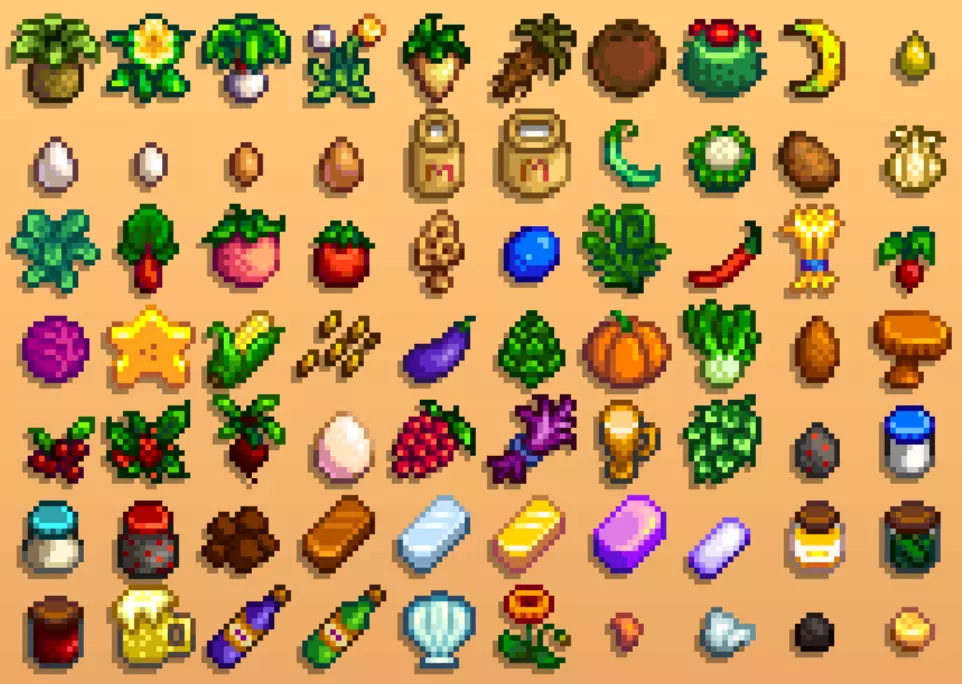 (如杀怪、锄远古斑点、钓鱼宝箱、破坏任意矿井里的木箱/桶等)。将金色动物饼干喂给某个动物或给鱼塘使用时,其产量永久增加1倍(猪除外),如果清空鱼塘则该效果消失。