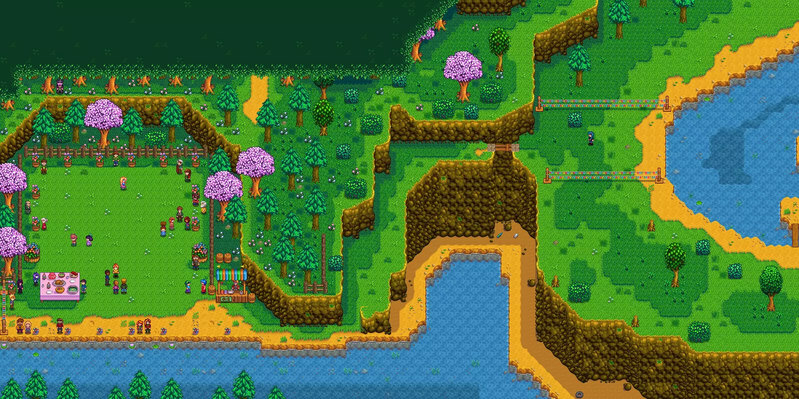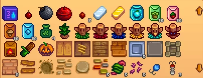 星露谷展览会:在每年秋季16日举行,玩家需要在当日上午9点—下午3点前往鹈鹕镇广场参加。该展览包含许多小游戏,通过参与可获得星星币(节日结束后星星币将自动清空),在展台使用星星币可购买星之果实。展会上的游戏有钓鱼、弹弓射击、轮盘等,也可直接购买星星币(不推荐此方式)。 农庄展览:玩家需向展示栏上供九件物品,镇长会依据物品的质量和种类进行打分,并奖励相应的星星币(获得第一名可得到1千星星币)。