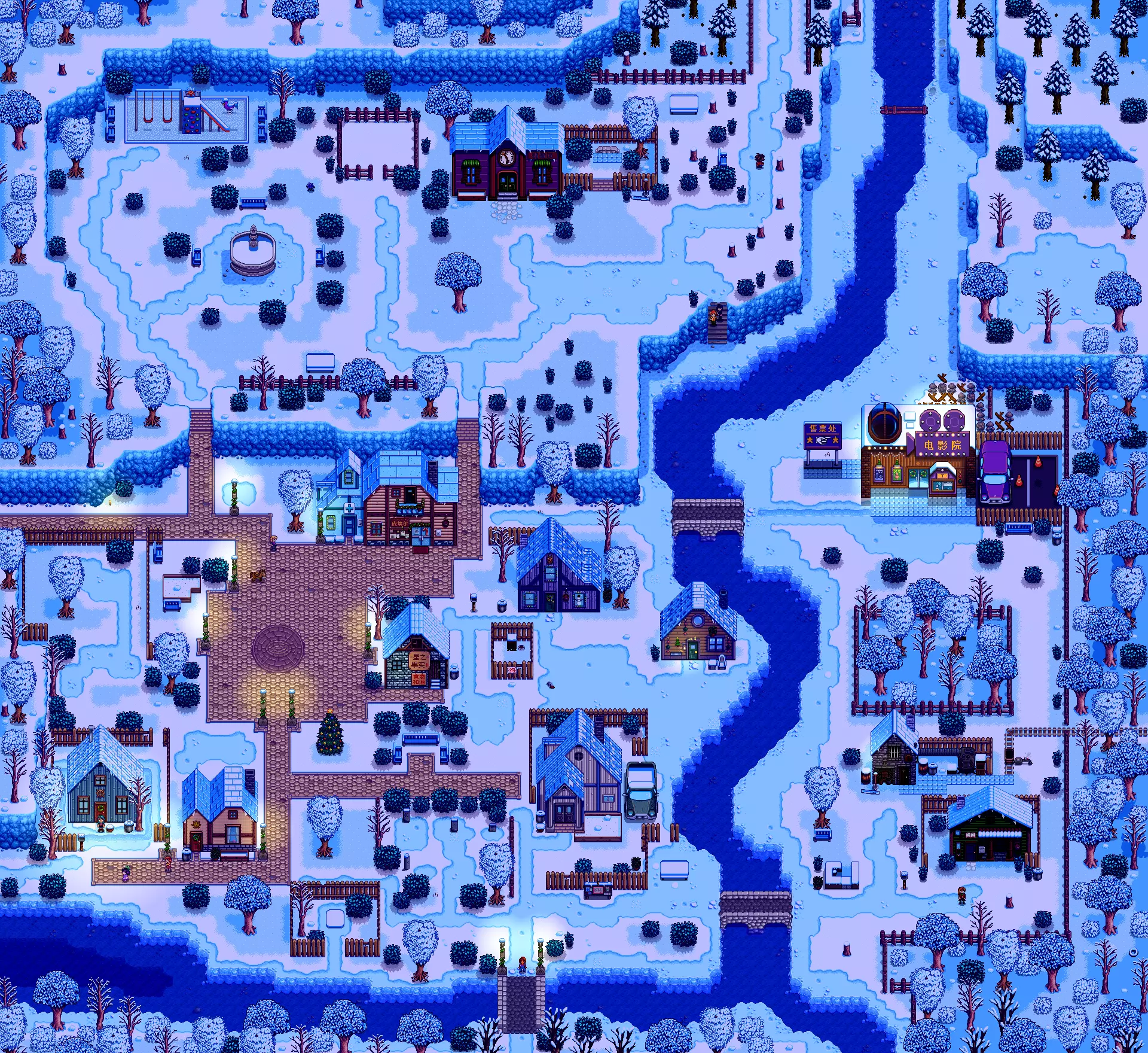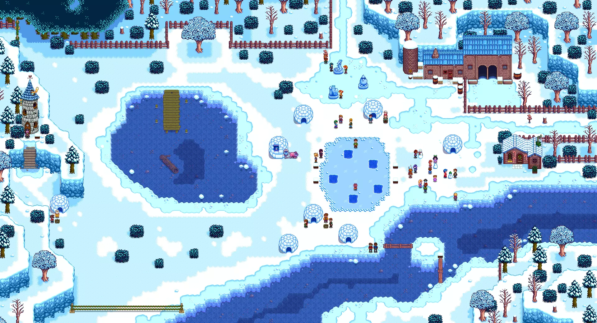 冰雪节:每年冬季8日举办,玩家需在当日上午9点至下午2点前往玛妮的农场参加。冰雪节的比赛项目为钓鱼,玩家至少钓得五条鱼即可获得冠军(多人参与时除外)。