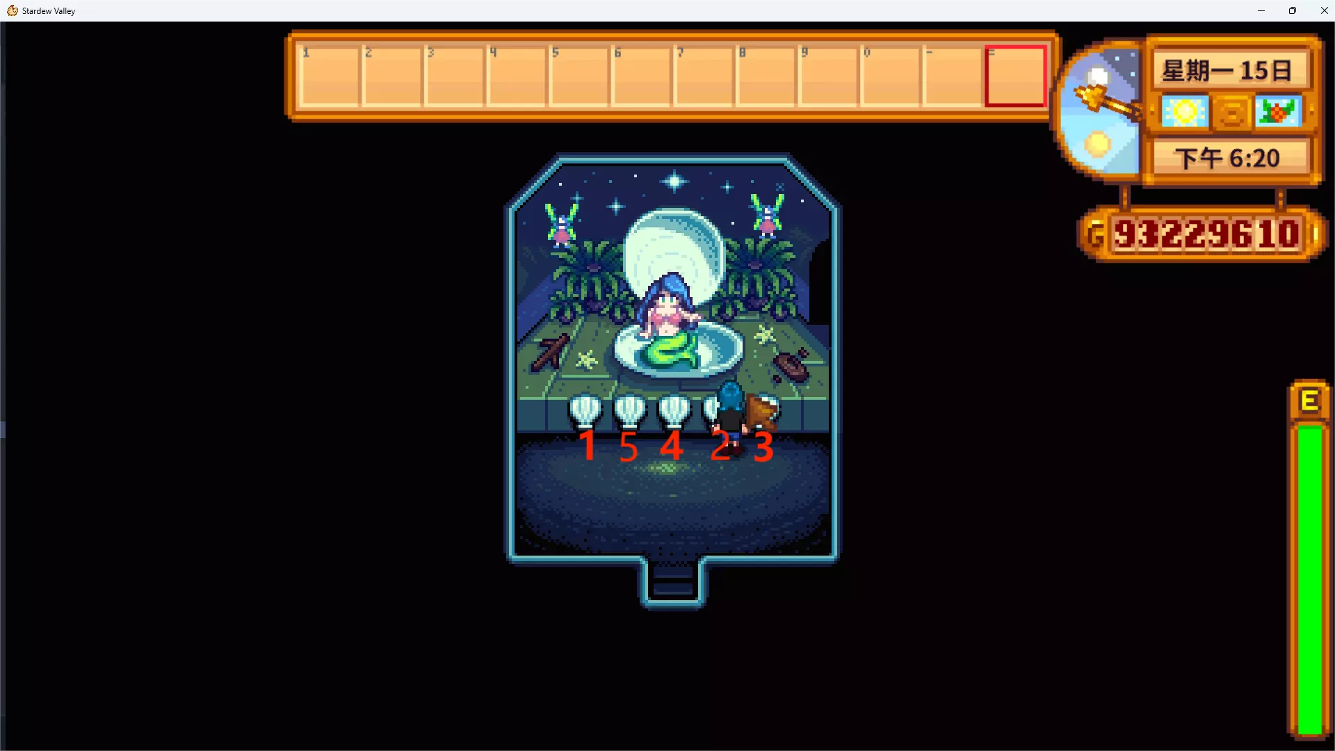 秘密纸条#151-5-4-2-3对应的美人鱼秀是冬季15号至冬季17号的夜市,开放时间为17:00-次日00:30。 在美人鱼秀场地内,依次与从左数为第1、5、4、2、3个的贝壳互动,可获得珍珠。