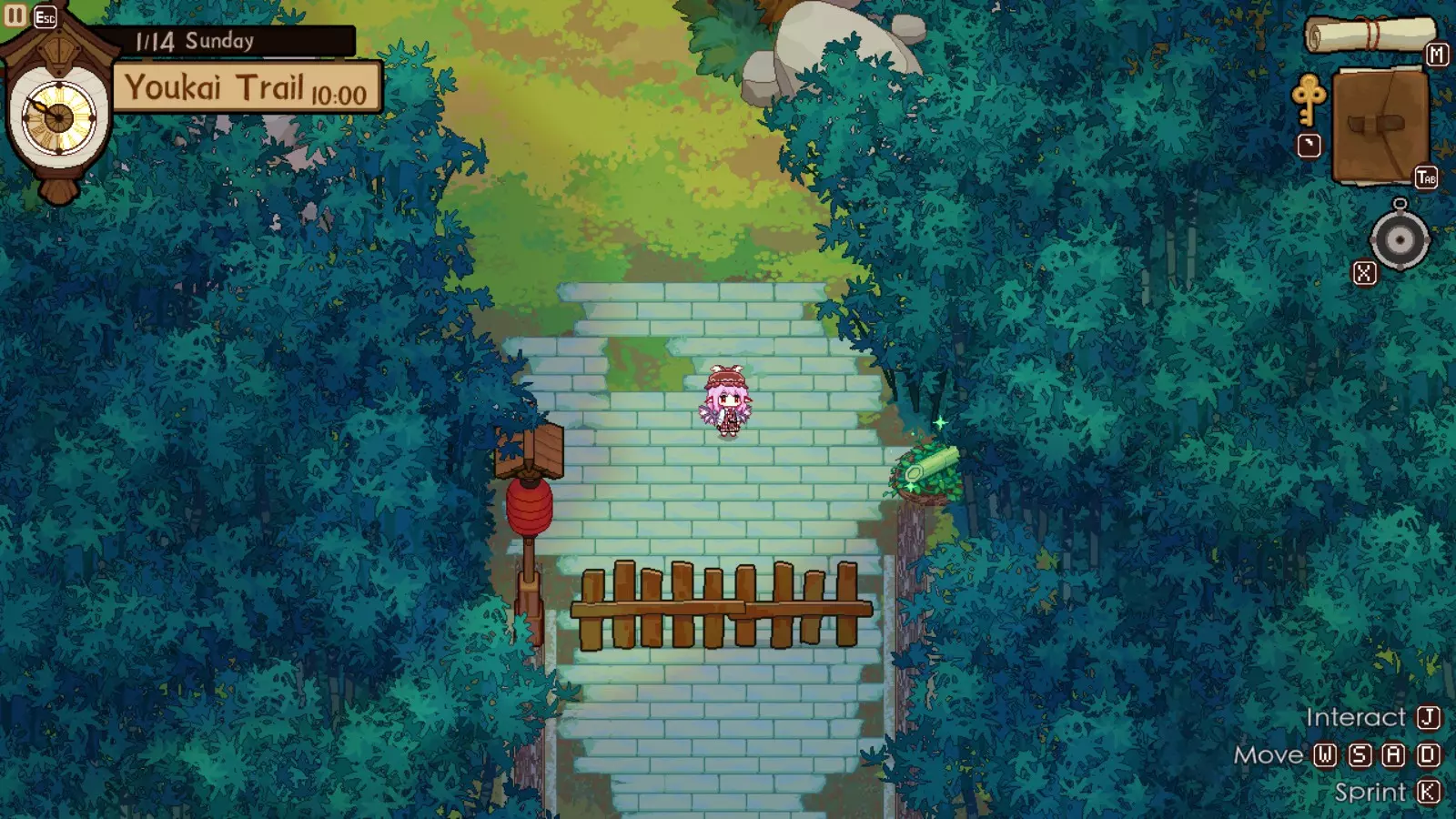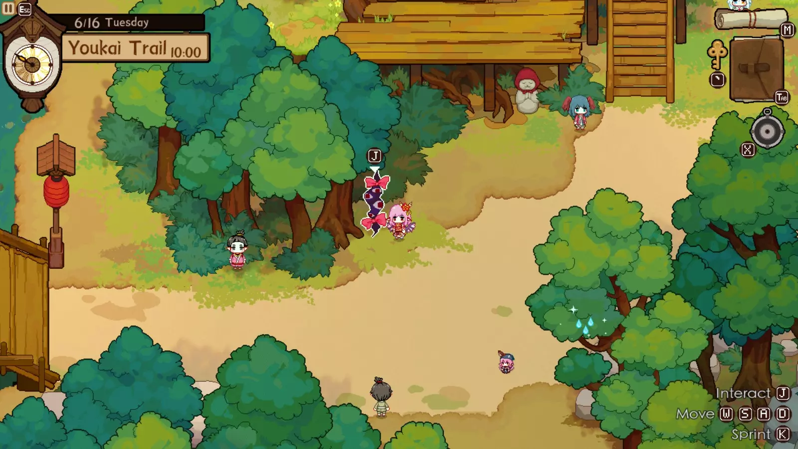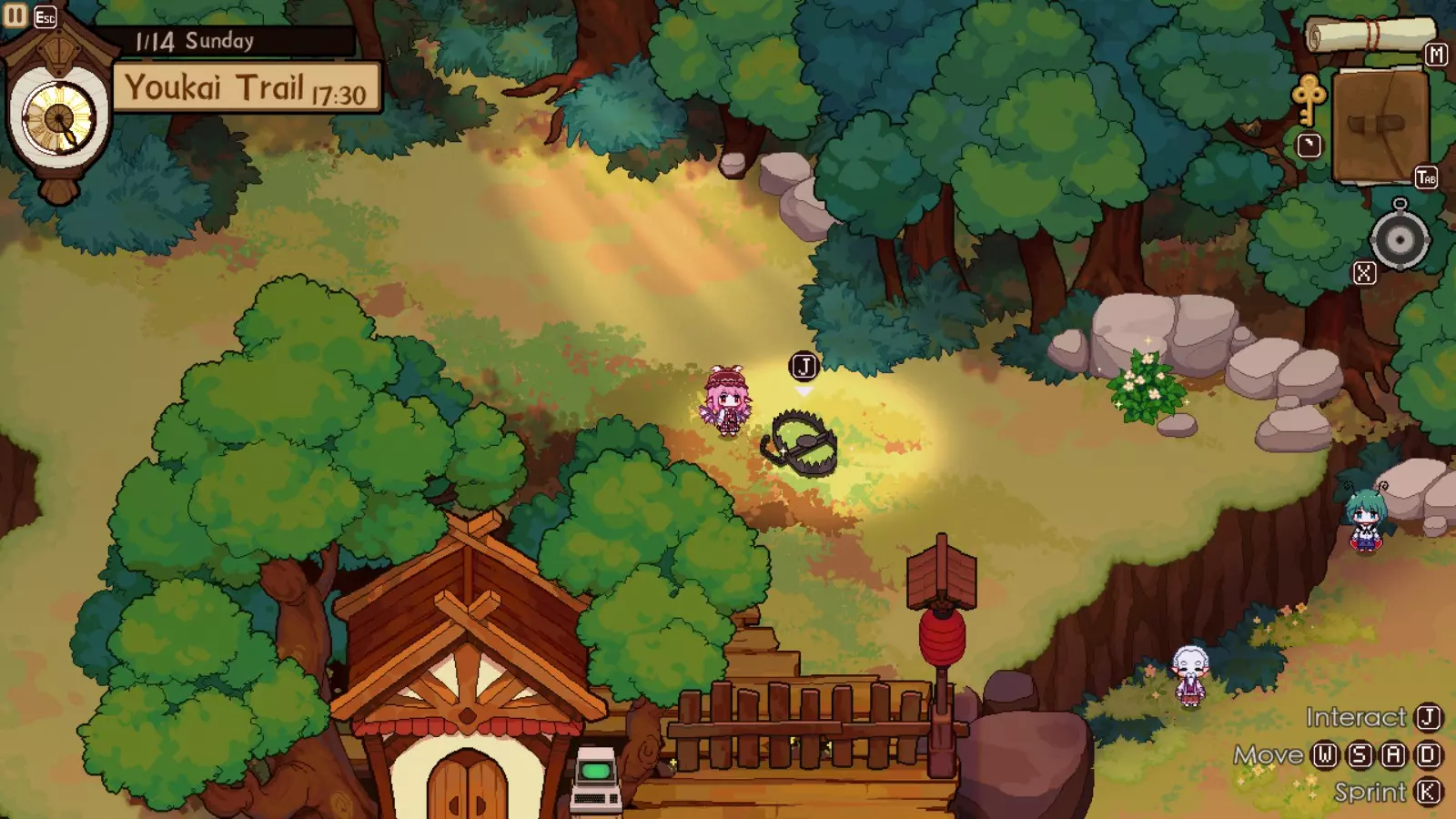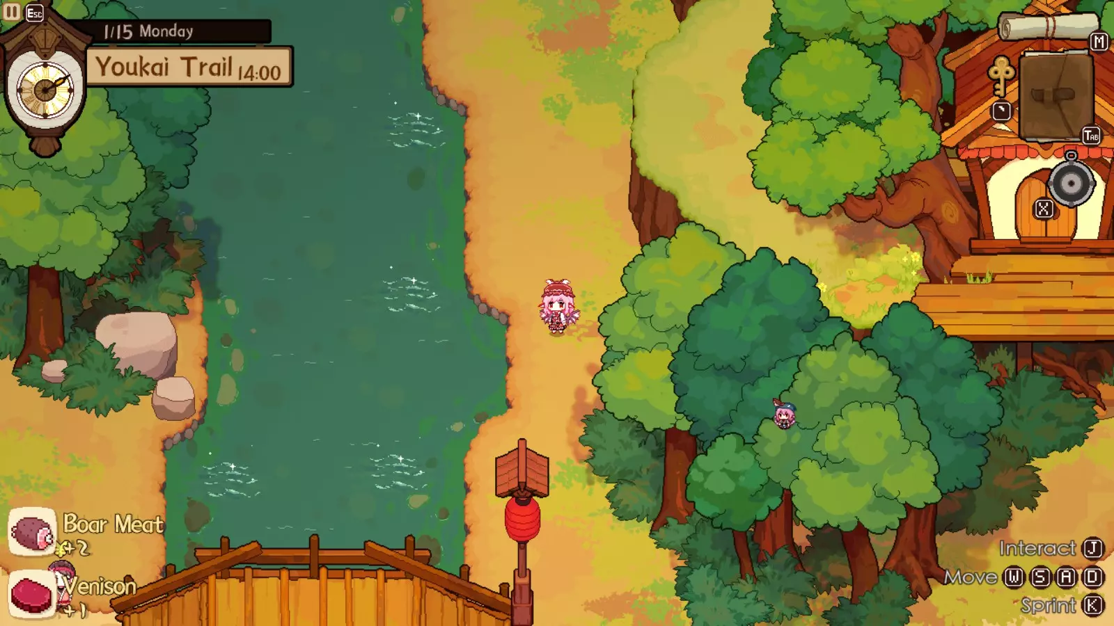 灵梦对此完全赞同,因为你的下一个目的地将是她的神社。我们正开始进入游戏中期,届时将可以通过商人获取稀有材料。如果你未能完成人类村落的任何稀有客人任务,仍可以邀请他们到博丽神社完成。在博丽神社的最初几天是强制流程,并且在第一天结束后你才能将博丽神社的居酒屋推车升级到小屋级别。尽快升级到小屋级别(第二级)是个非常好的主意,因为和之前一样,后续会有强制流程。