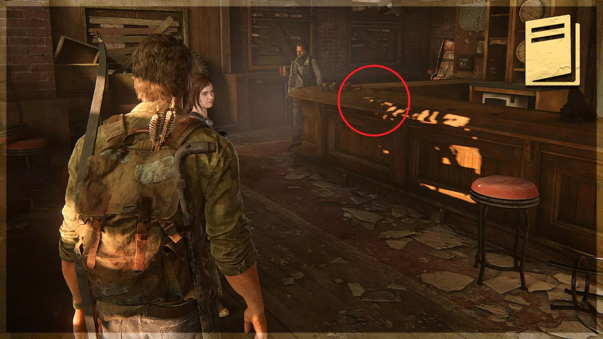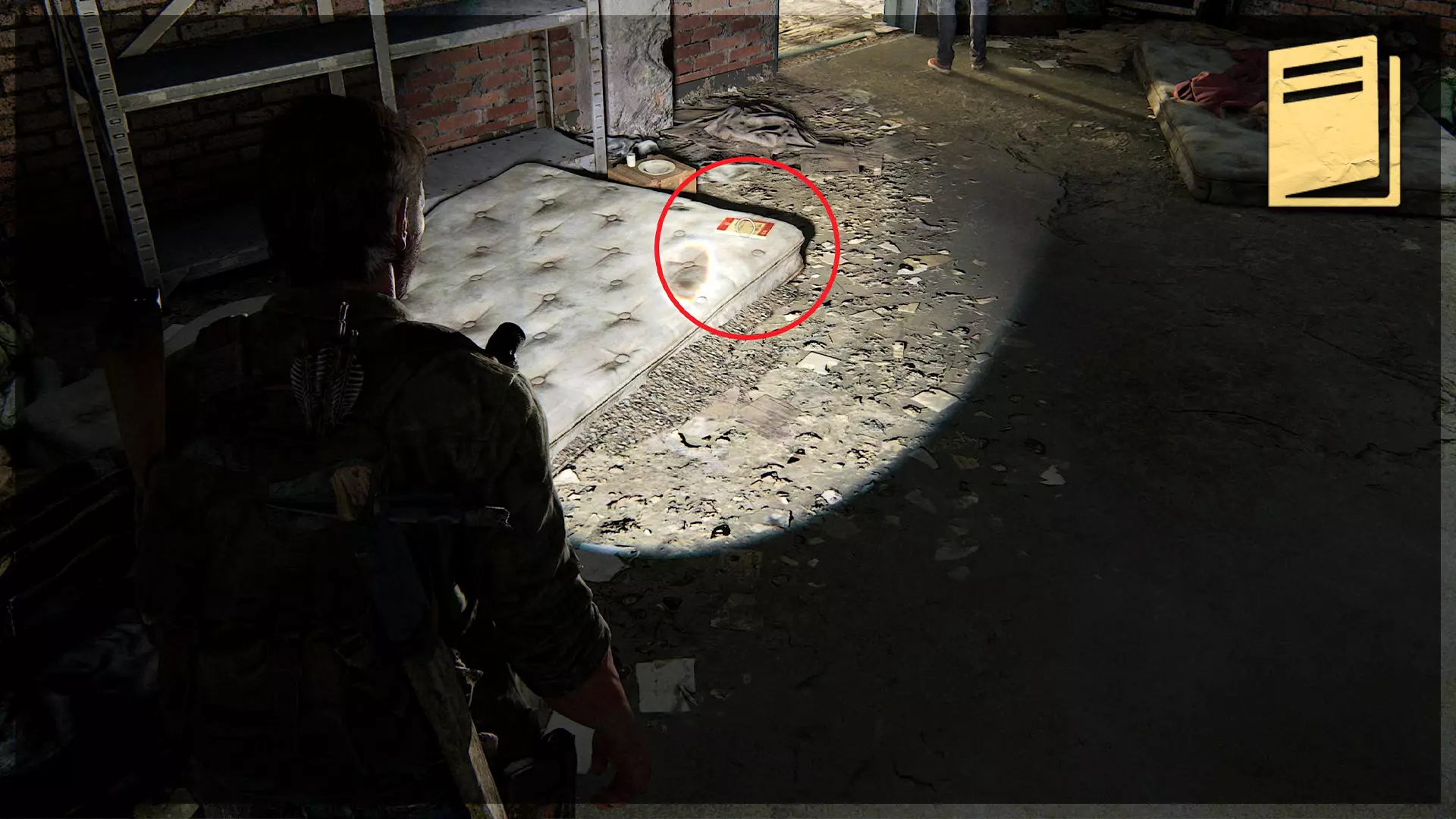 【遗物】(75/97) ➥ 肉类账簿 进入一扇敞开的门并拿到艾莉的背包后,这件遗物会出现在右侧的架子上。 地点:公交 depot