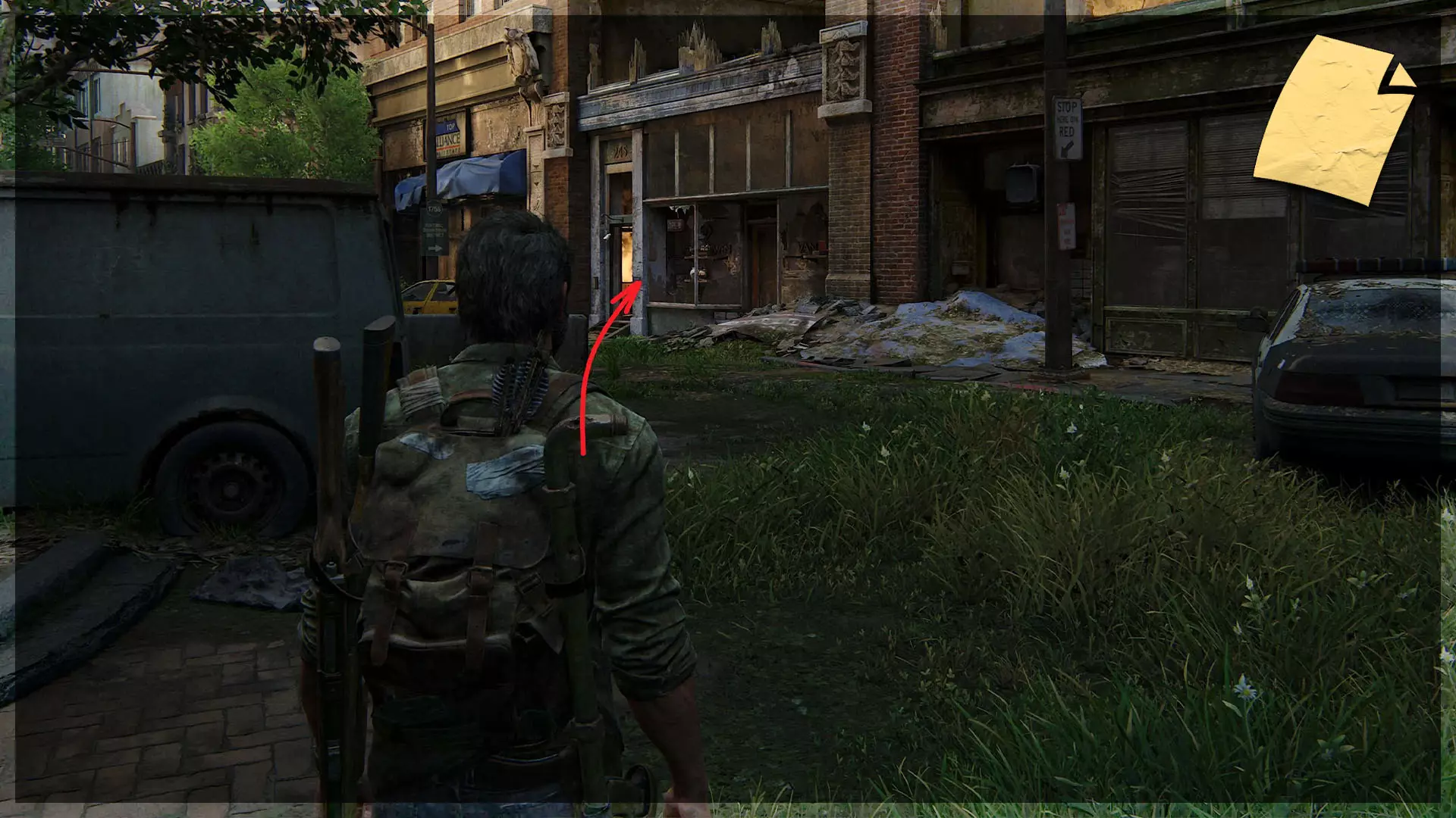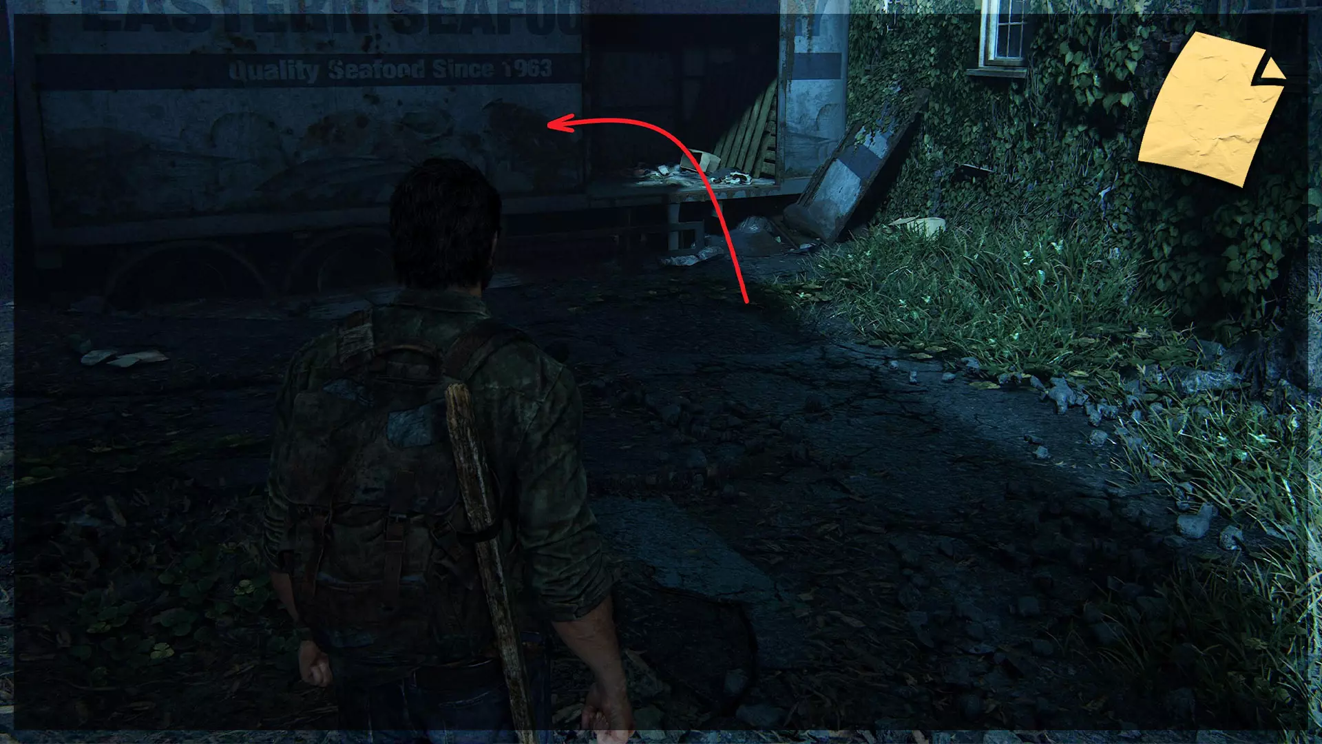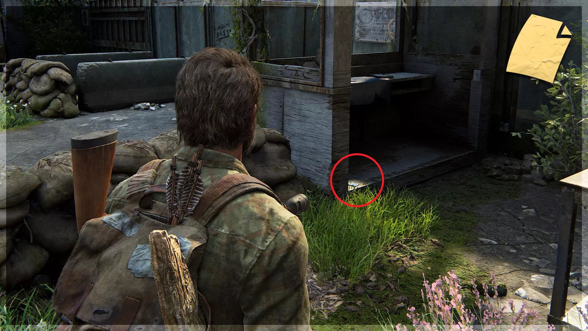 遗物(18/97) ➥ 给鲍勃的便条 从房车出发,前往道路尽头有围栏的地方即可找到该遗物,里面包含保险箱的密码。