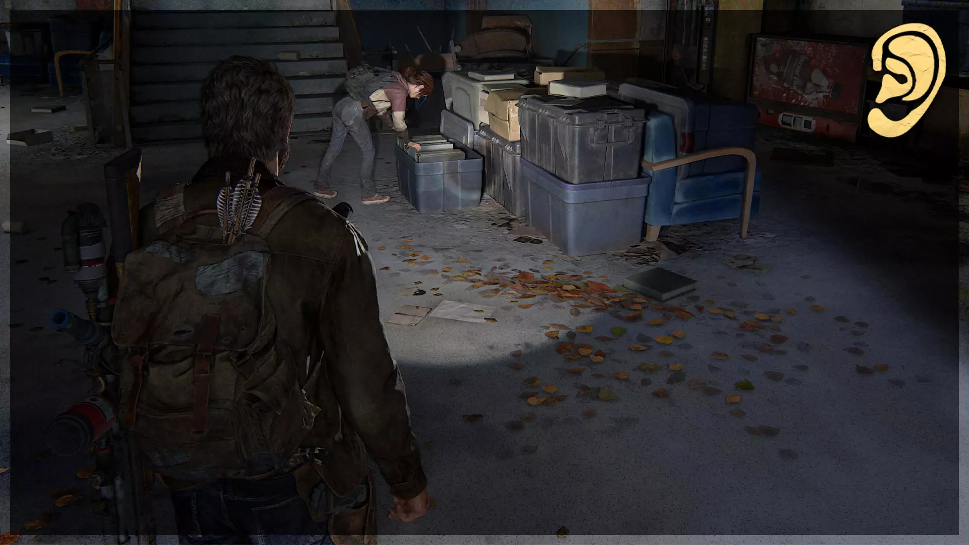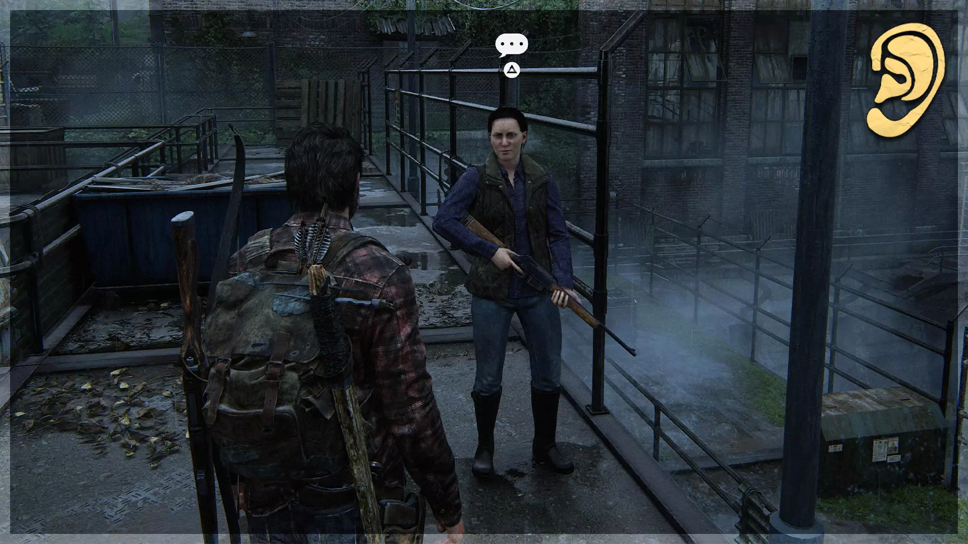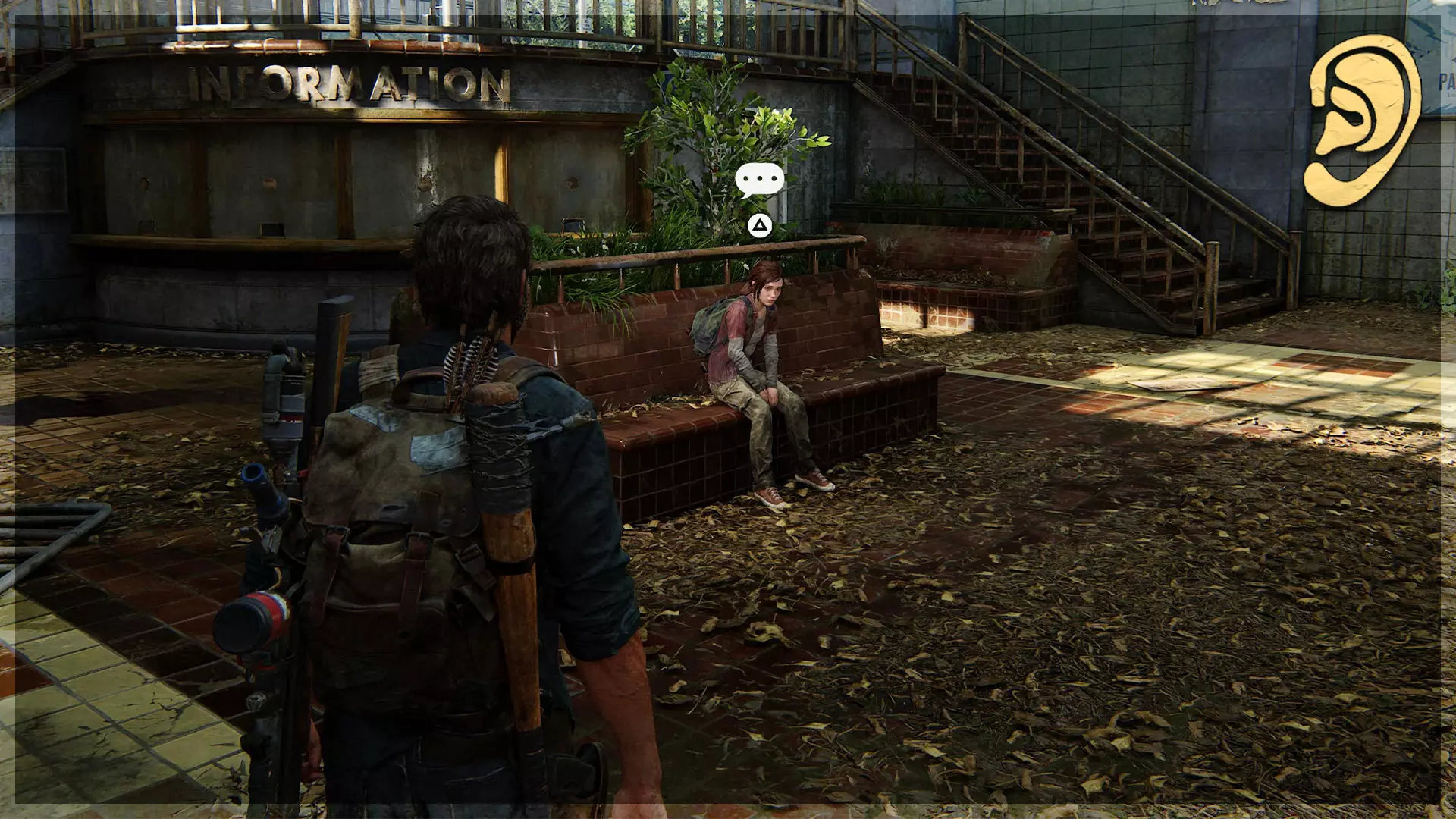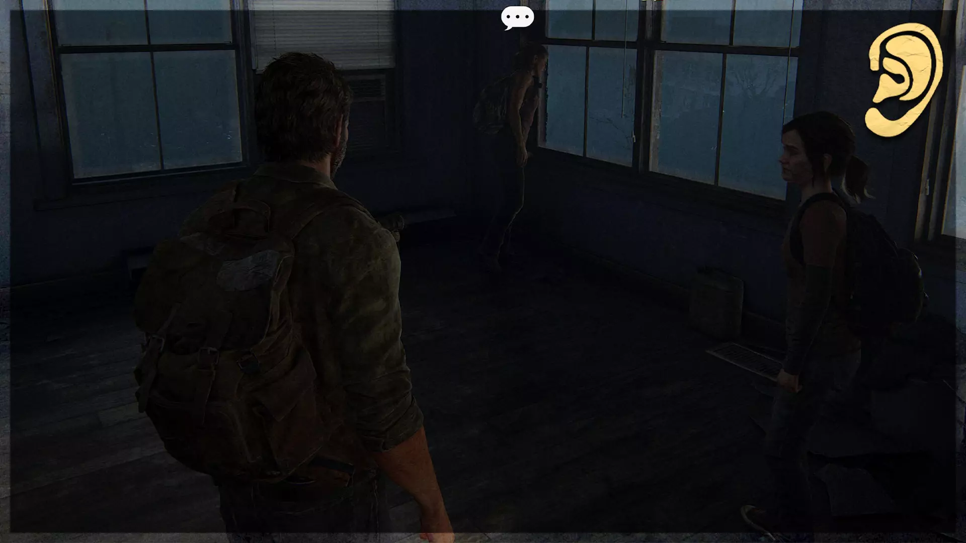 可选对话(11/54) 在获取上一个 artifact(收集品)的同一房间内,站在原地直到艾莉向你提问,确保在乔尔打断之前与她交谈。
