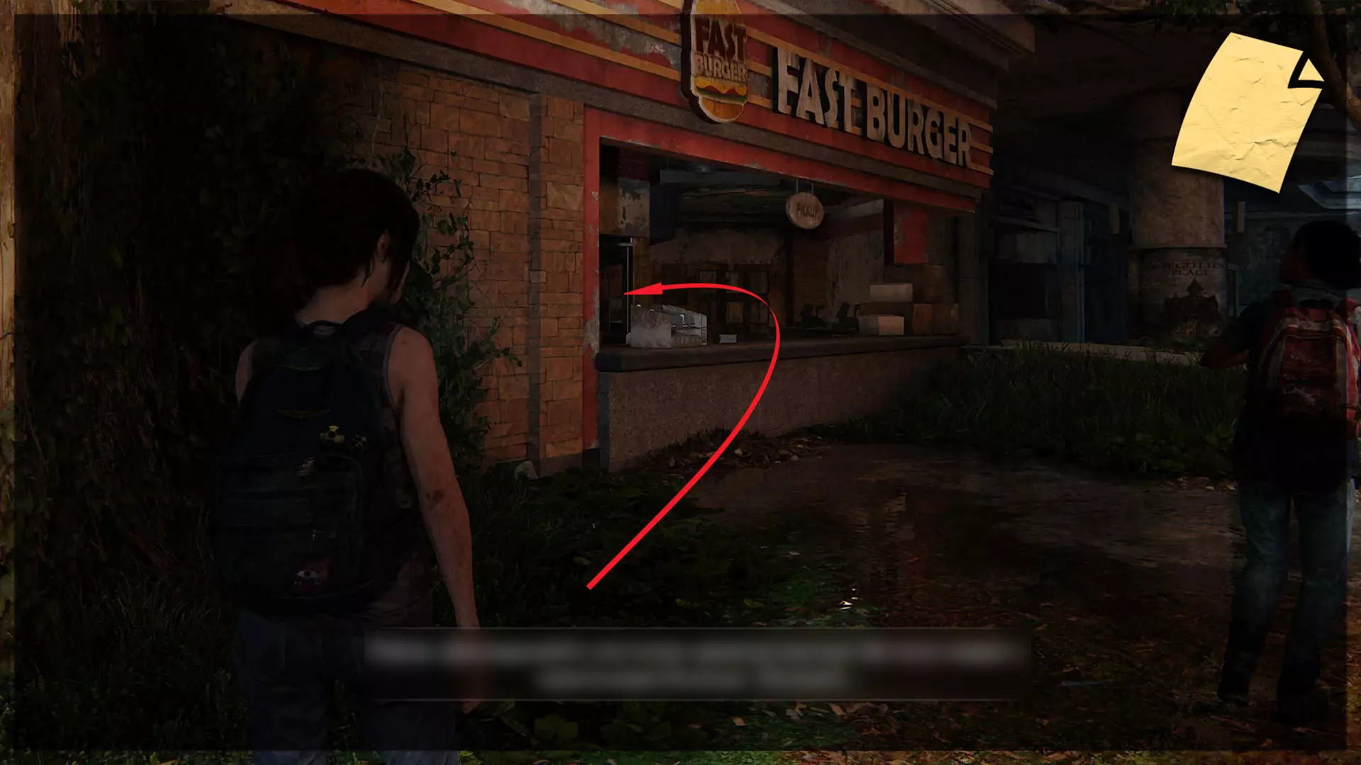 【物品】(95/97) 厨房便签 旋转木马旁边是快餐汉堡店。进去后前往厨房,在长椅上可以找到这张便签。