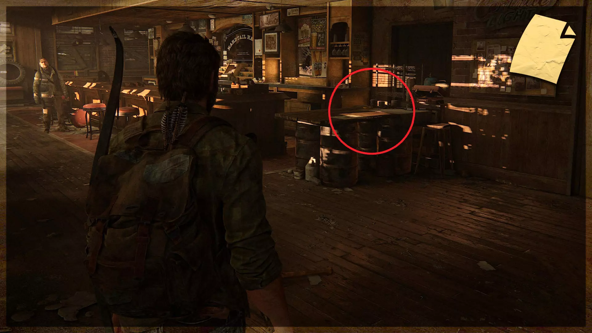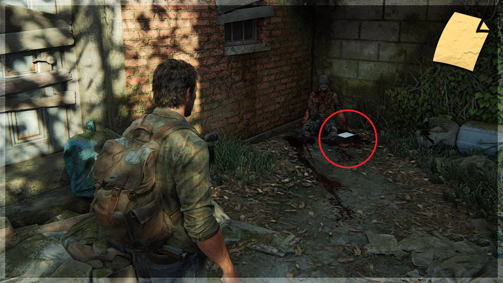 【遗物】(17/97) ➥ 药片笔记 使用木板穿过一栋建筑后,你将到达比尔镇中心。进入右侧的建筑,在楼上的地板上可以找到这个遗物。