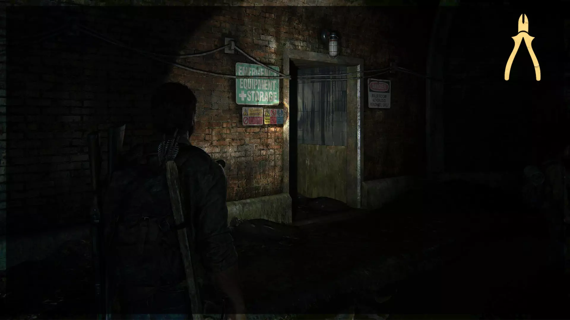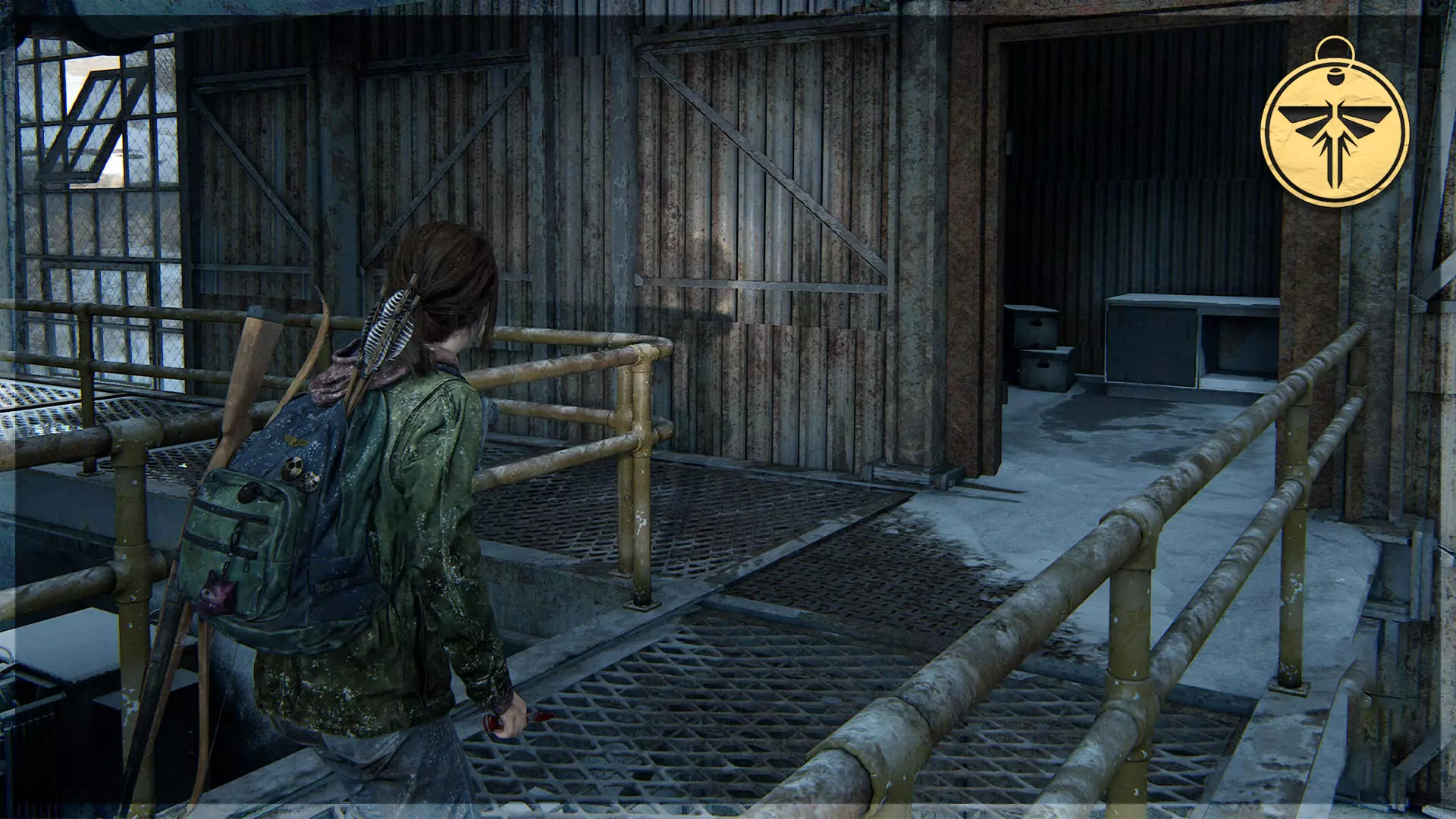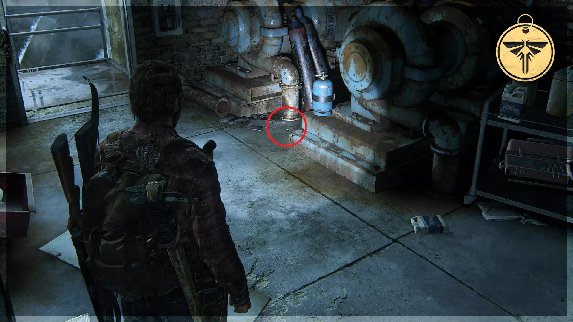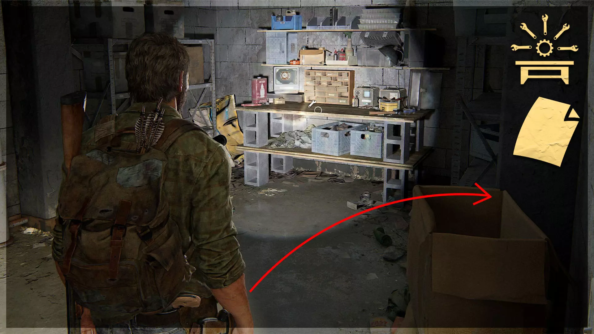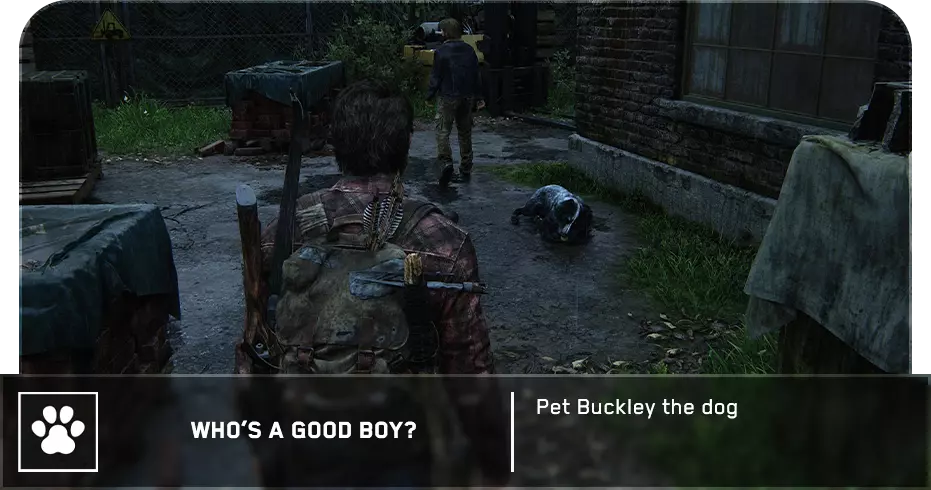 可选对话(14/54) 工作台工具(2/5) 收集品(29/97)→ 游客清单 处理完猎人后,进入车库,与衣物堆旁的艾莉交谈,获取带有收集品的工具。