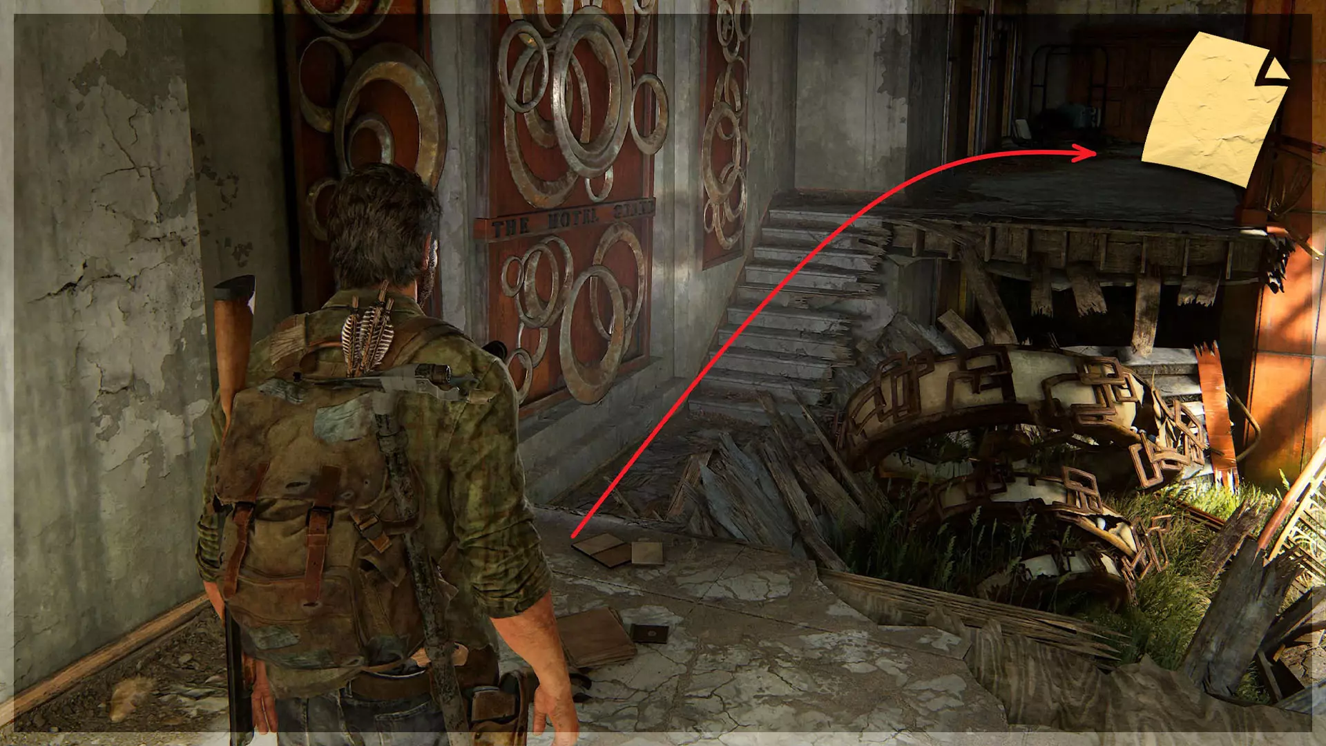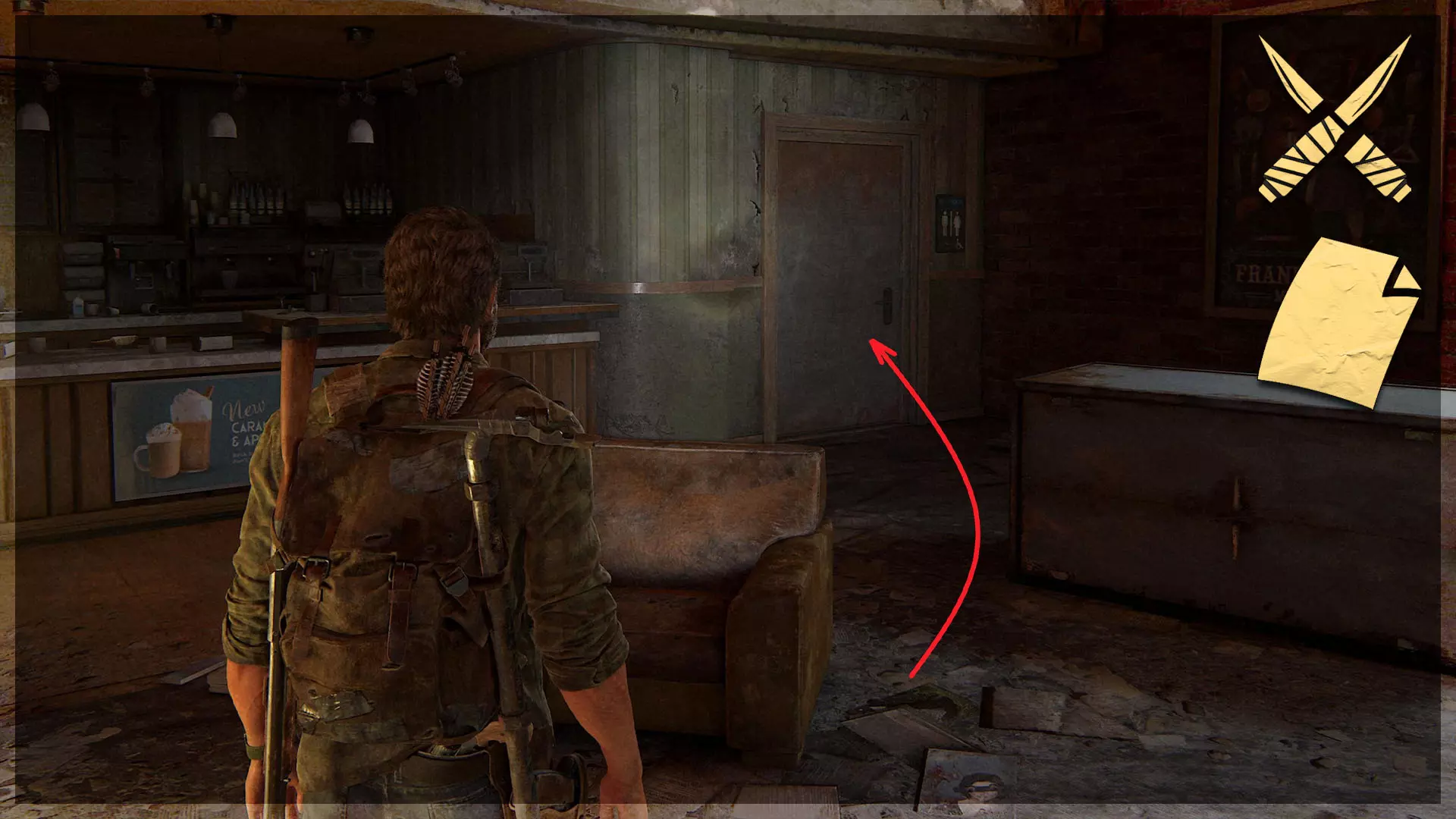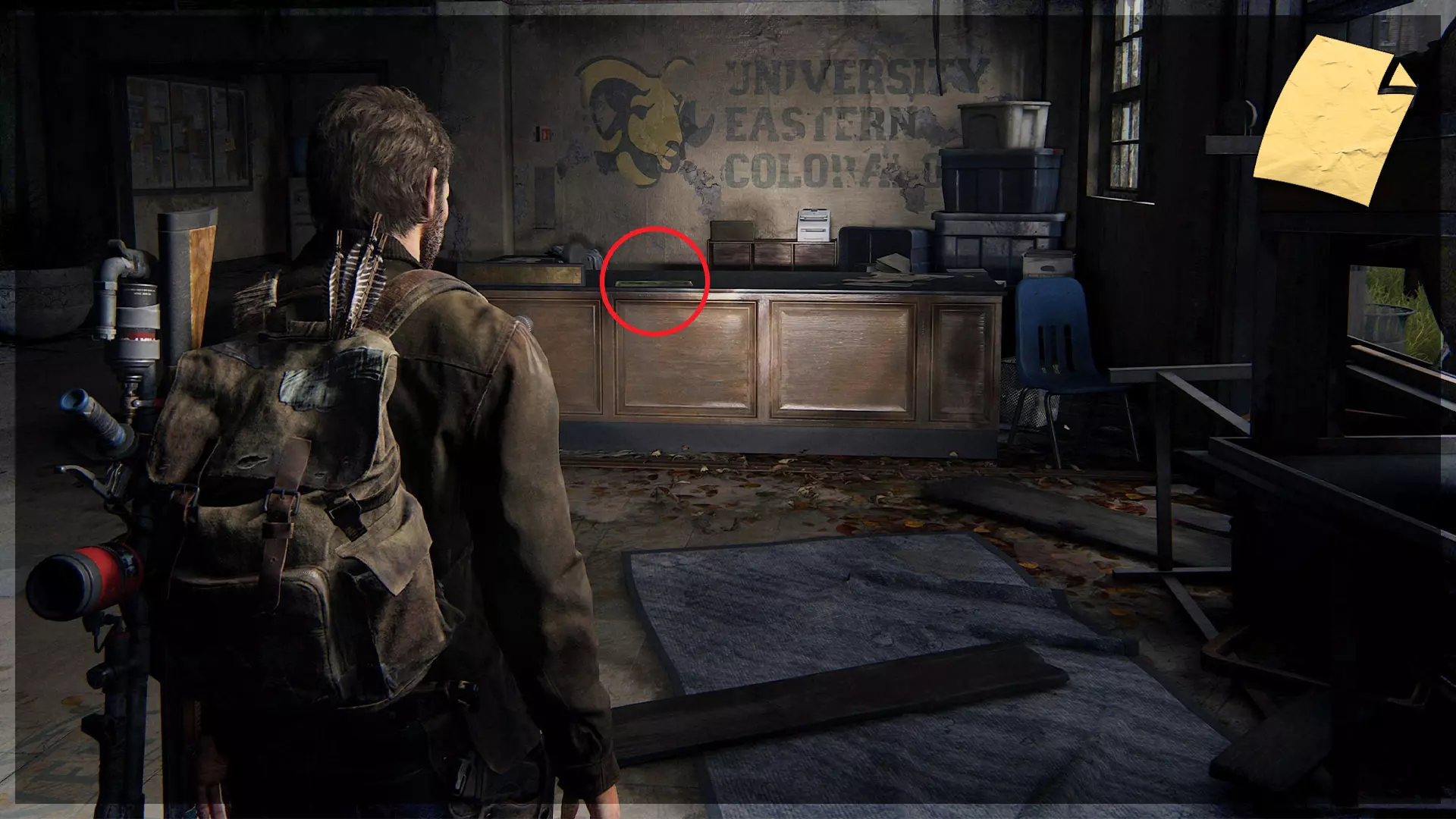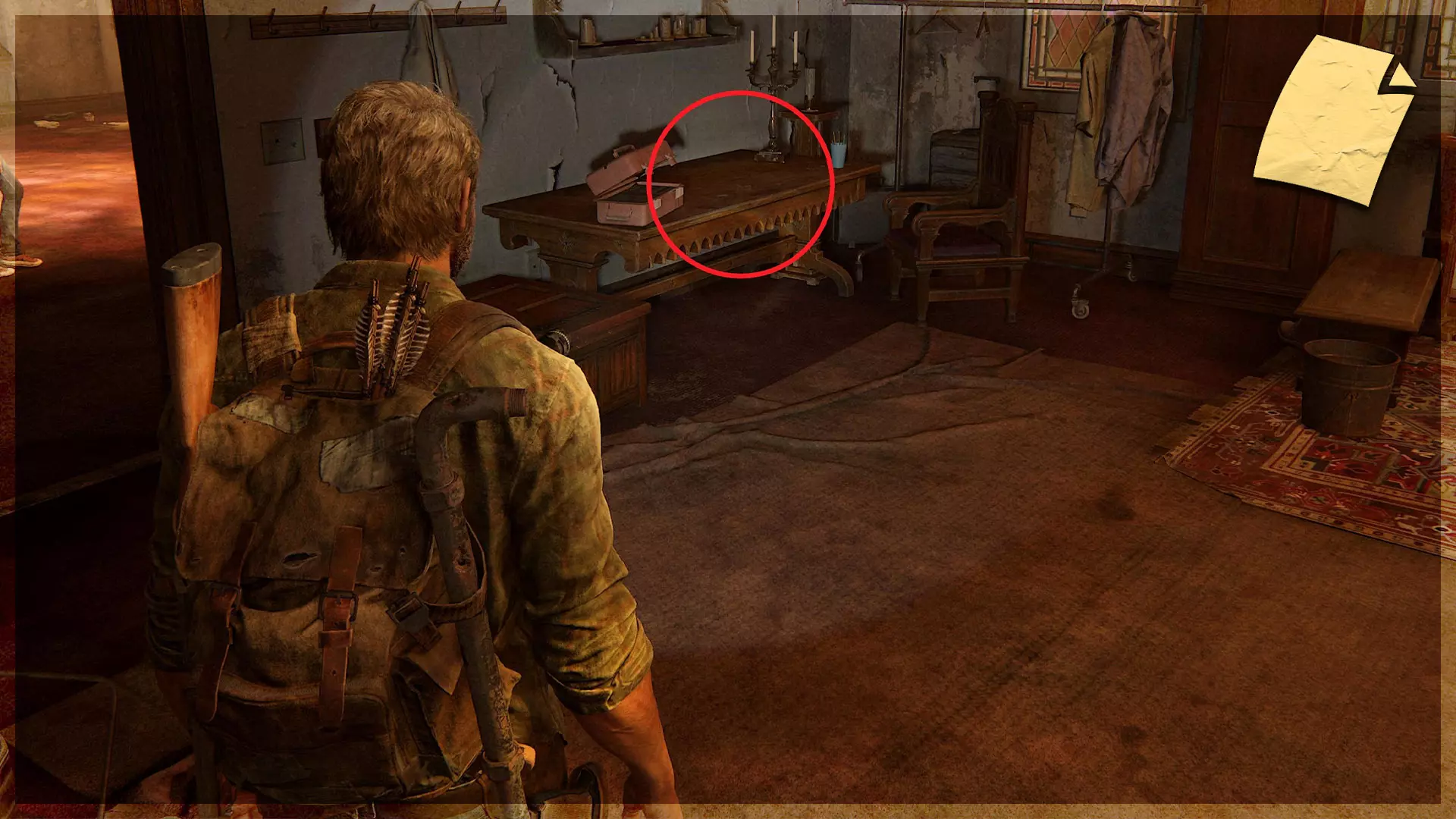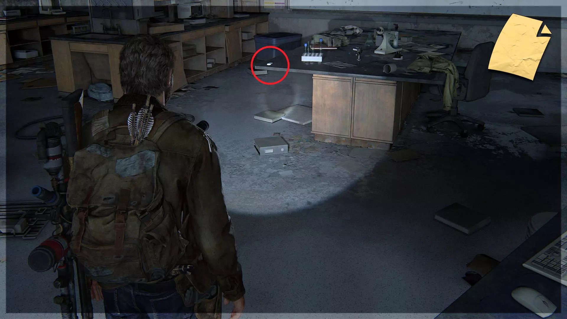 【物品】(8/97) ➥ 苔丝的清单 章节开始时,它会直接出现在你面前。如果你正在加载章节或重新加载检查点,它会在你身后的房间里。