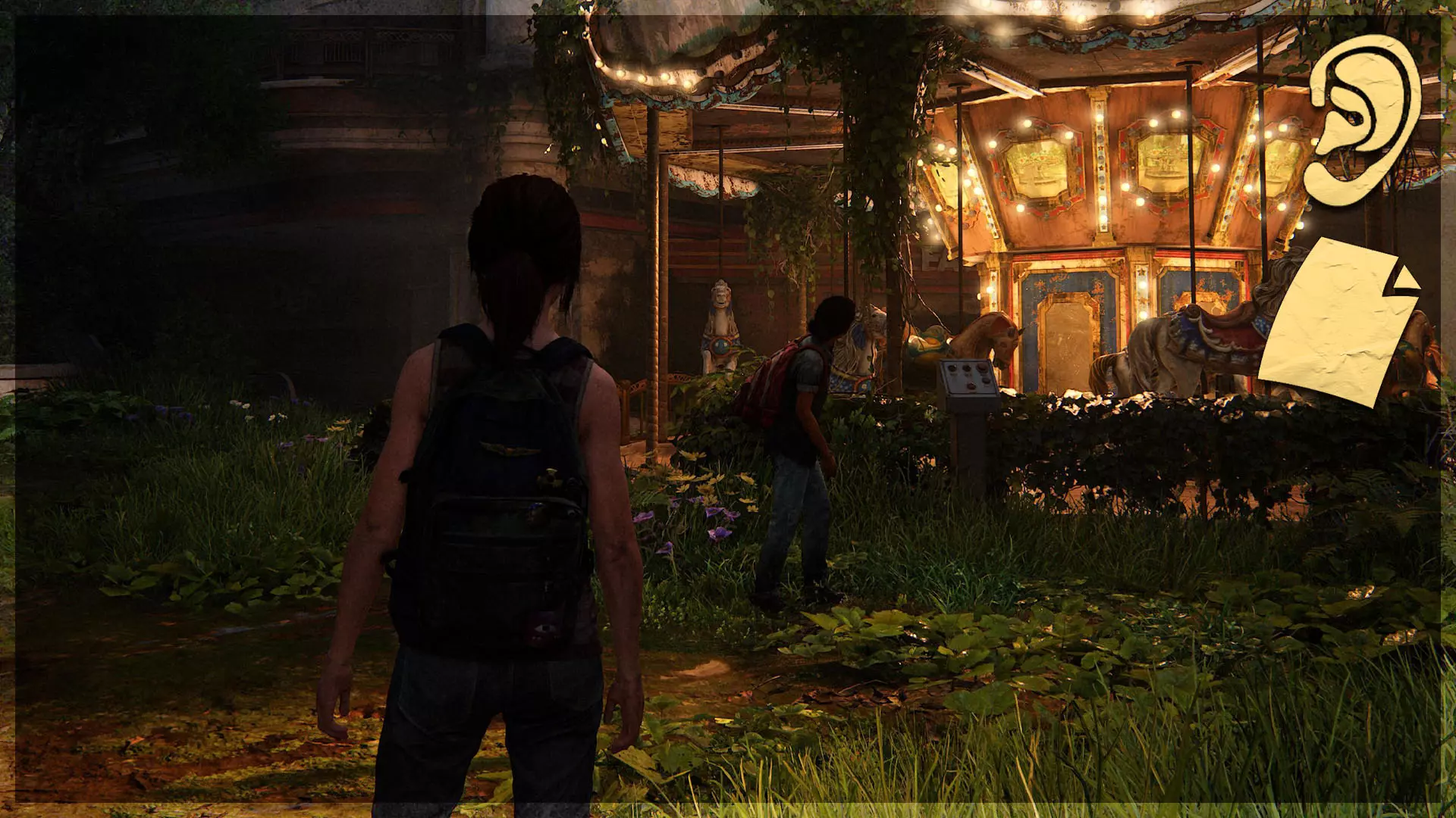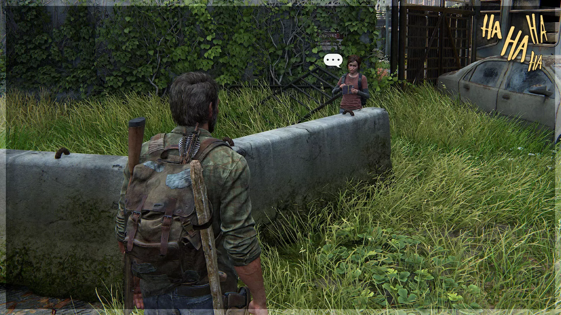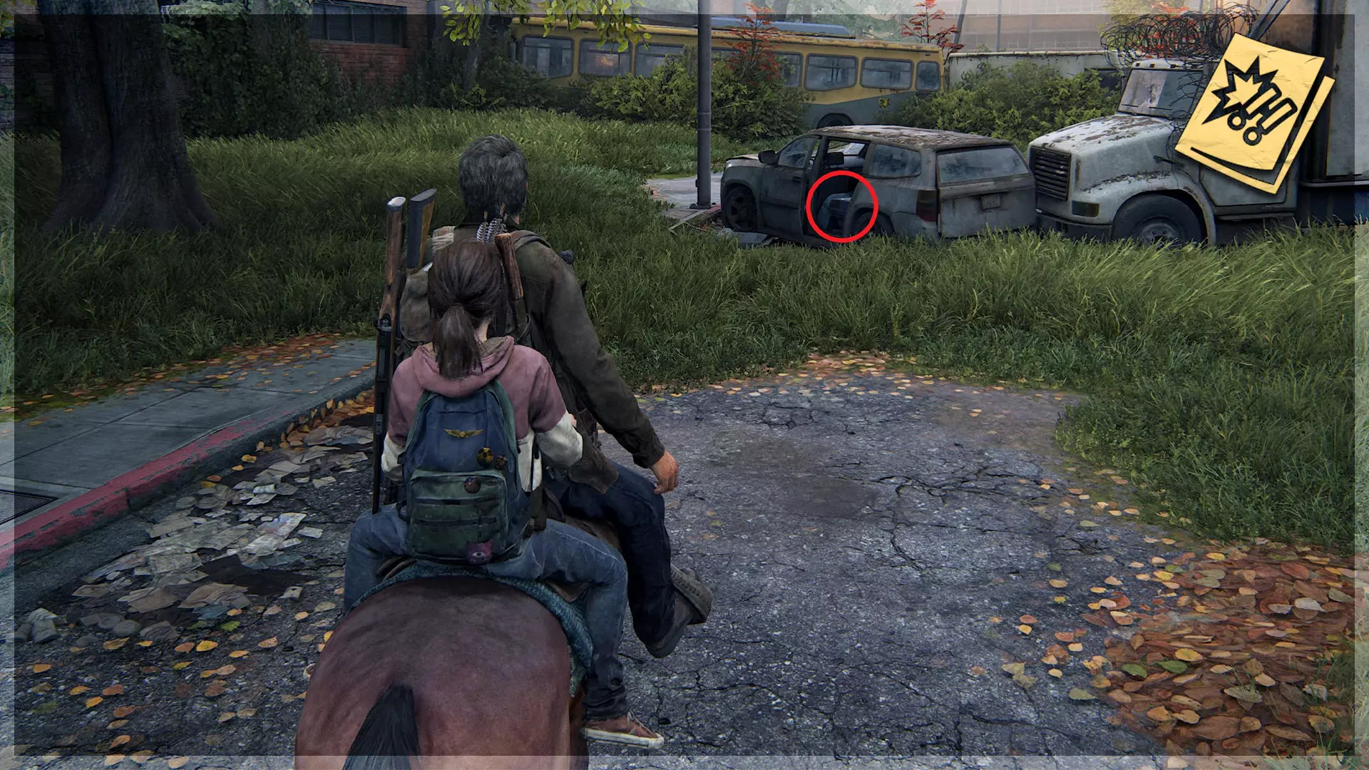 可选对话(40/54) 收集品(79/97) ➥ 乔尔与莎拉的照片 继续走向巴士,艾莉会过来和你交谈。与她对话,然后接受她的礼物,即可获得该对话和收集品。