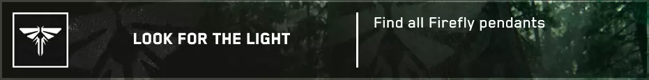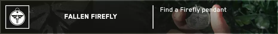 萤火虫吊坠(3/30) ➥ 菲利普·刘 与艾莉同行后,向前走,在一名死去的萤火虫成员旁边可以找到这个萤火虫吊坠。 郊外