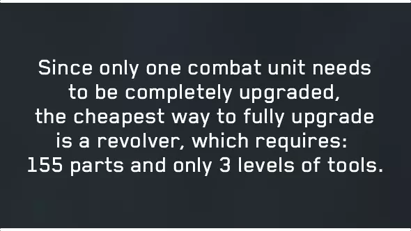 【战斗准备】升级武器对于让你的旅程更轻松至关重要,因为它会根据你的游戏风格以多种方式强化武器。升级武器需要两种资源: 零件 - 它们是游戏中升级武器所需的主要资源。零件随机分布在各处,但 Shiv 门(原词)内含有大量零件。每个 Shiv 门(原词)保证至少有 50 个零件。 工作台工具 - 武器升级只能在工作台进行,且每把武器完全升级至少需要 3 个此类工具。你可以选择完全升级哪把武器,只要你在游戏过程中仔细搜刮,并专注于在遇到的各个工作台升级那一把武器,那么在一个游戏流程内就能完成。你也可以进行第二次新游戏+周目,以防你在第一次游玩时没有收集到足够的零件来完全升级一把武器。