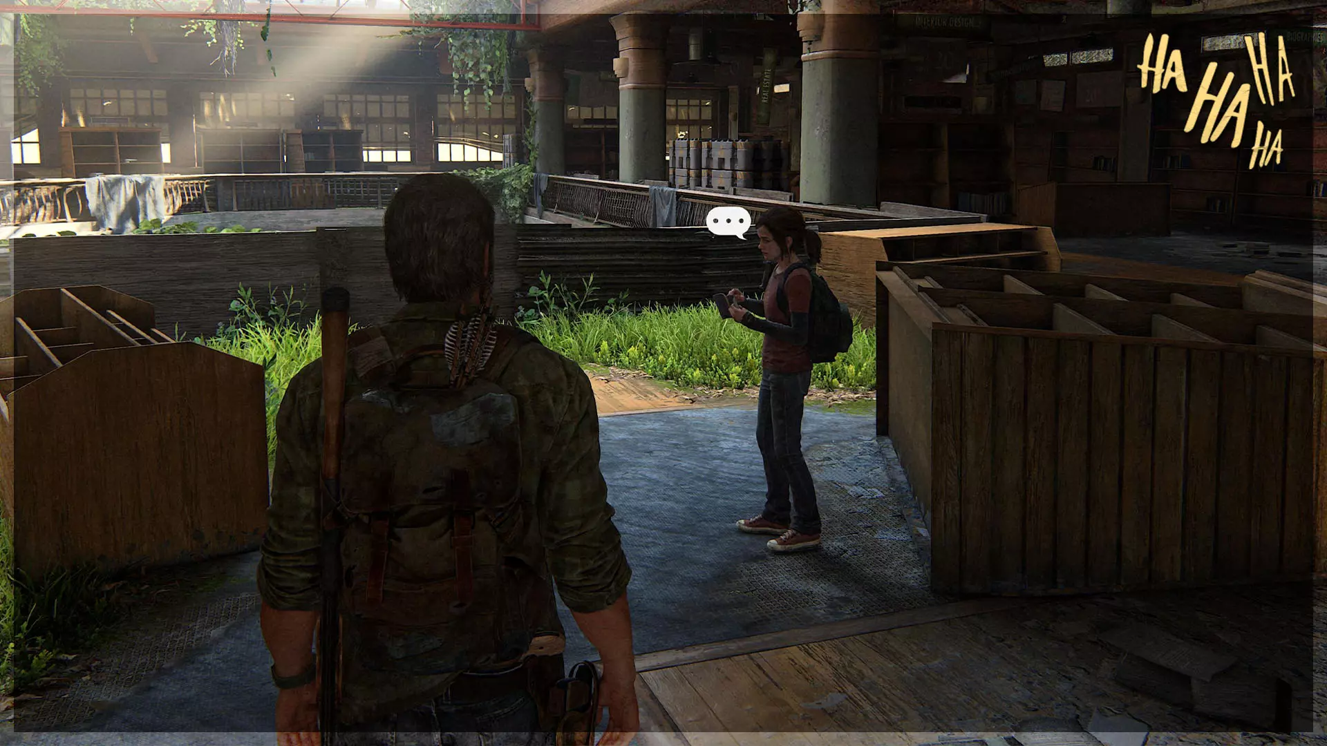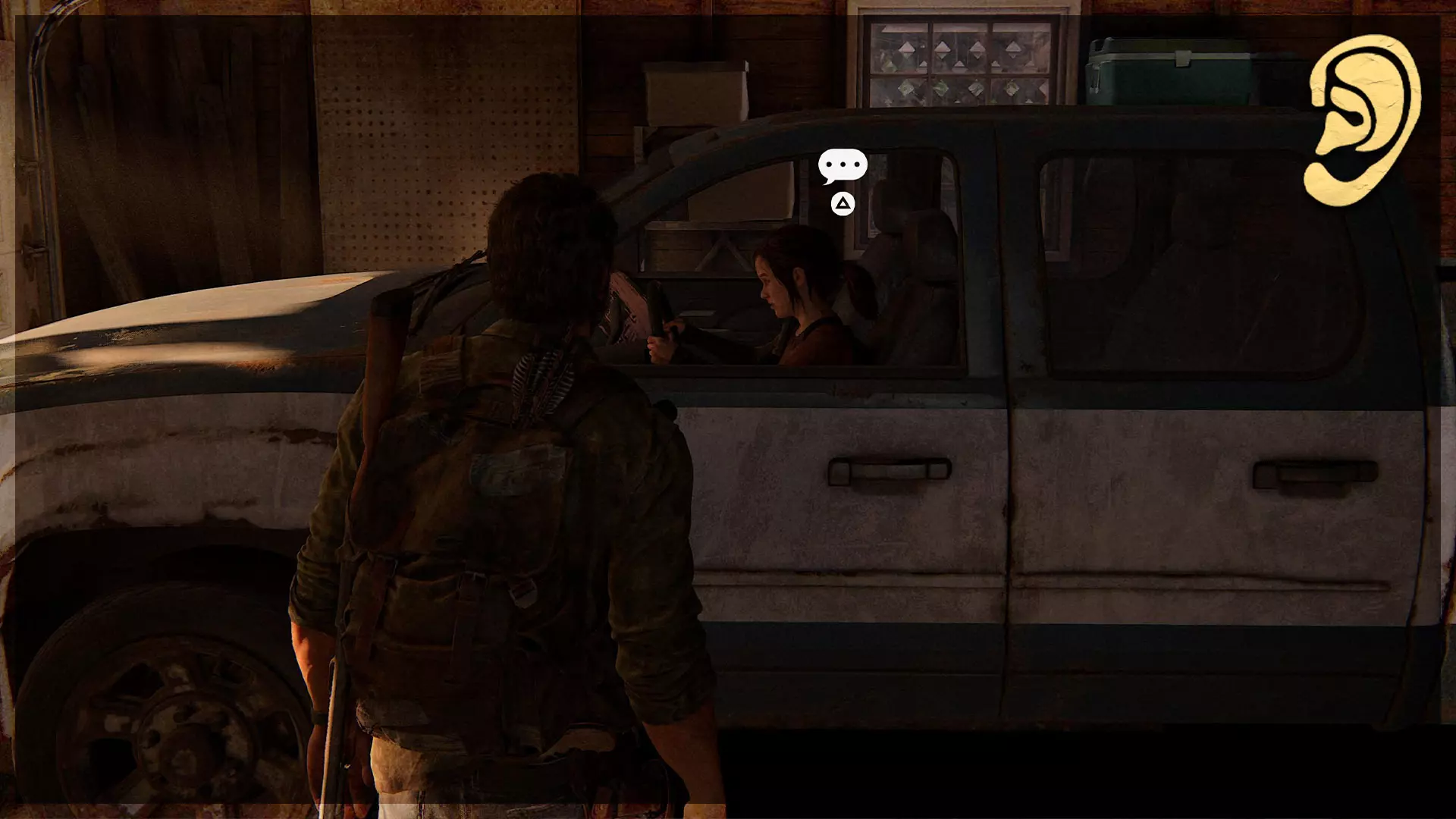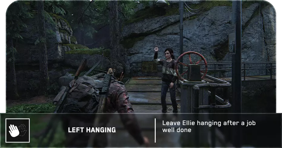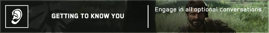 可选对话(35/54) 章节开始时,乔尔会和艾莉交谈。最后他会问她一个问题,触发此可选对话。