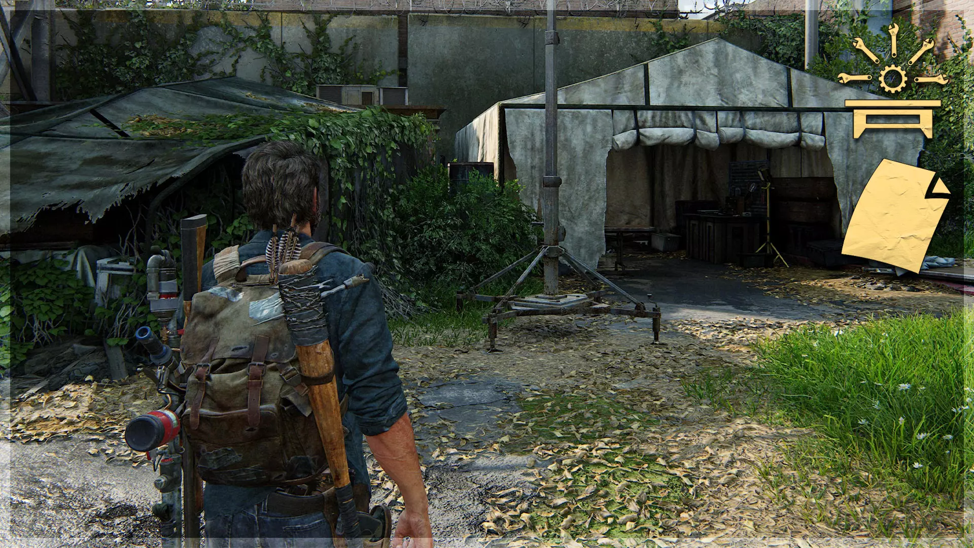 遗物(63/97) ➥ 真菌X光 穿过帐篷区域后向左走,在长凳上获取此遗物。