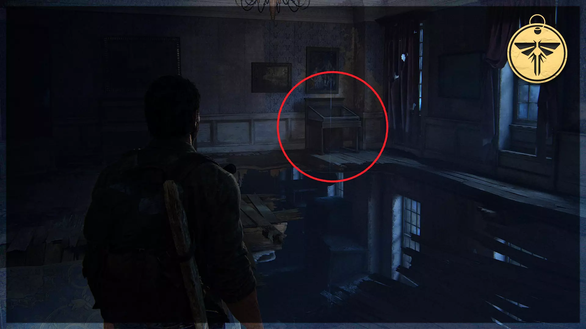 萤火虫挂坠(5/30) 获取者:迈克尔·基珀 继续前进,你将进入博物馆。走上破损的区域来到下一层,在那里你可以向左沿着边缘侧身移动,在一个展示柜中找到萤火虫挂坠。