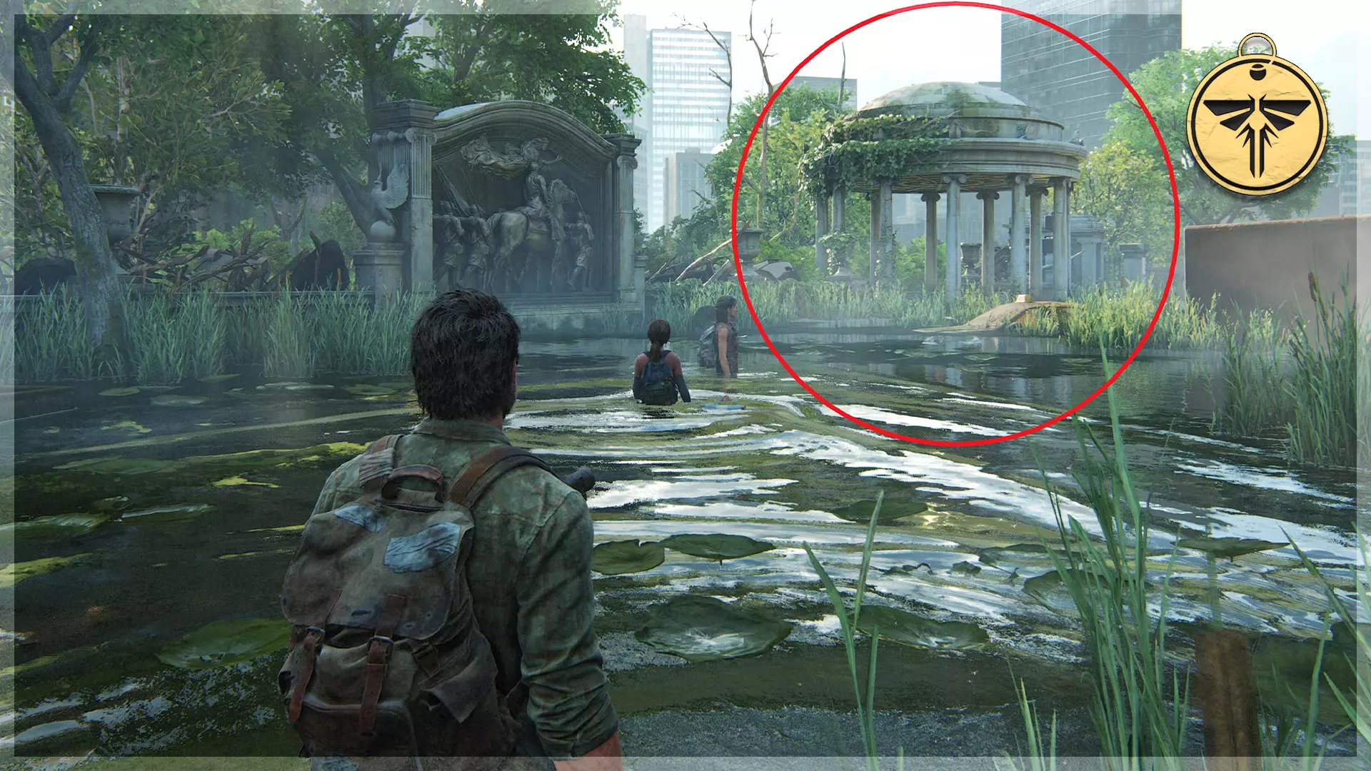 萤火虫吊坠(6/30) ➥ 梅琳达·戴维森 一直前进,直到抵达国会大厦前有大量积水的地方。左侧会有一个凉亭,里面放着吊坠。