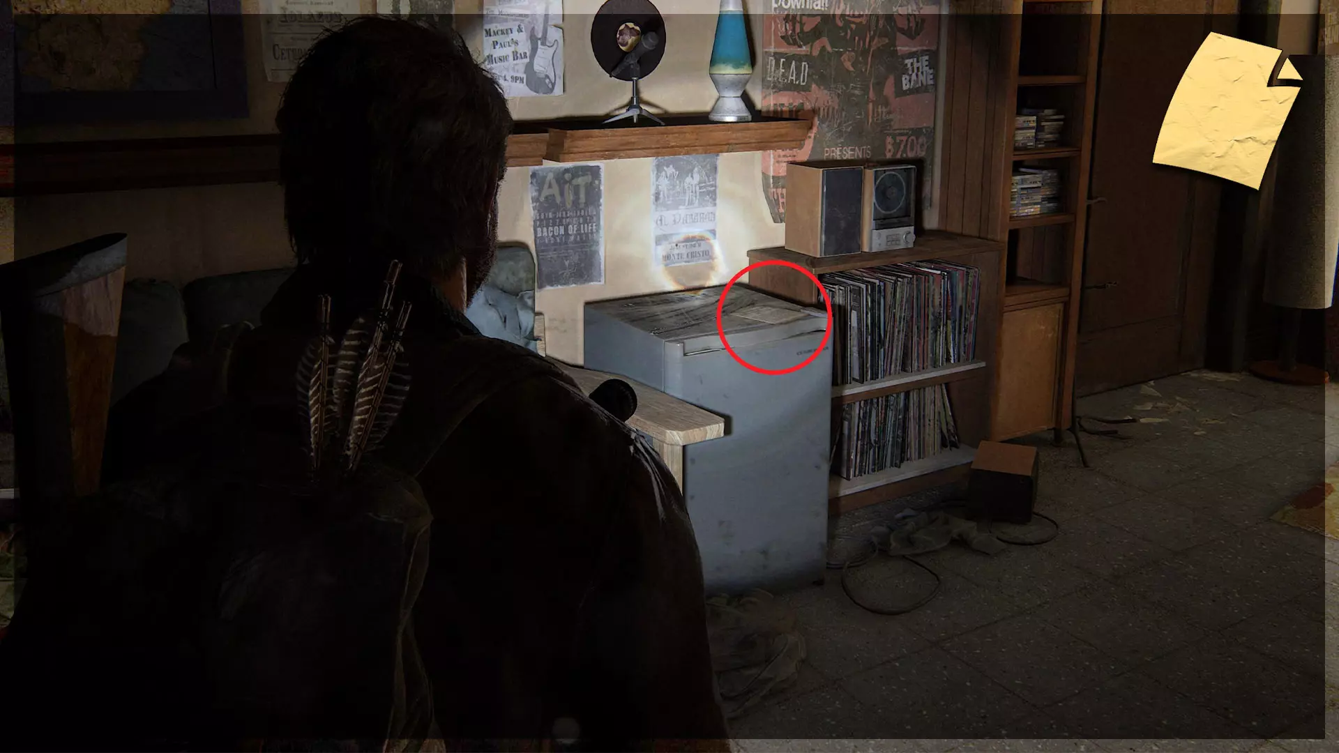 遗物(19/97) ➥ 周边笔记 房车旁边是马奎斯音乐商店。进入后面的办公室,在一个柜子上可以找到一件遗物。