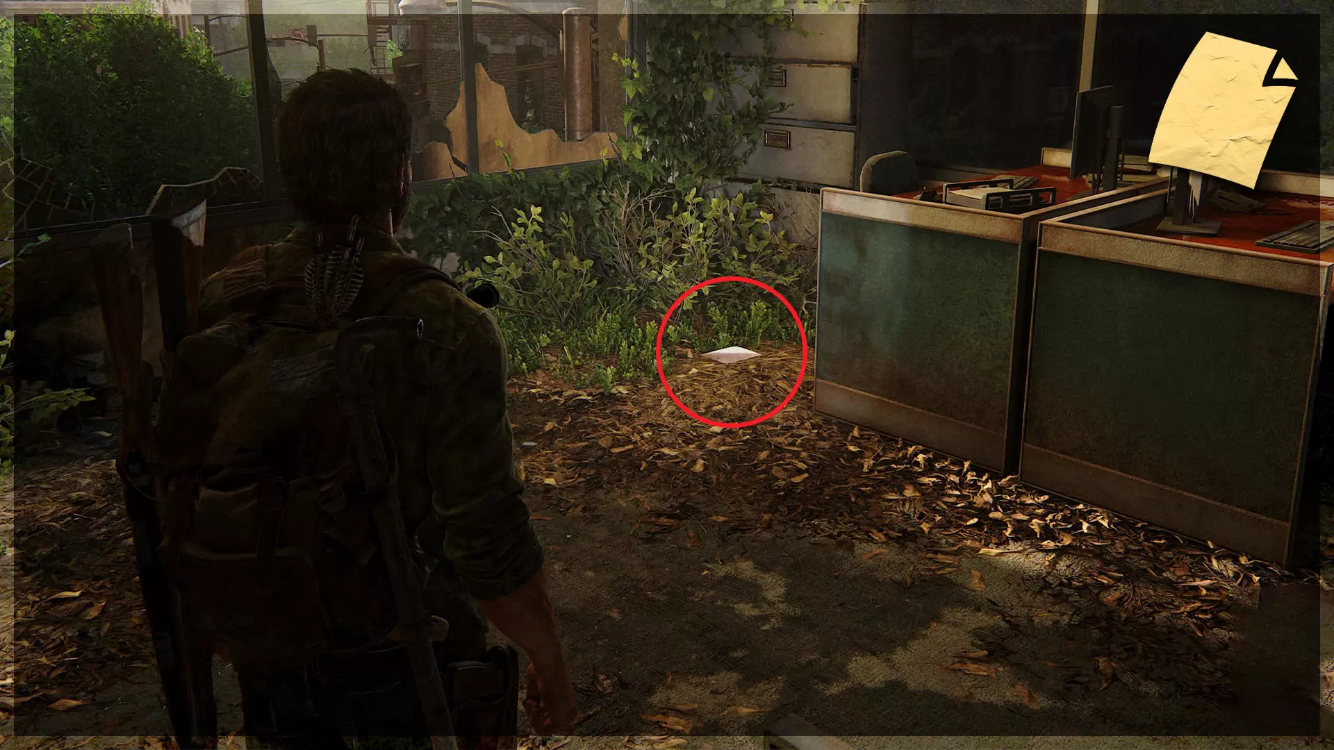 遗物(3/97) ➥ 给兄弟的便条 在一个布满孢子的建筑上楼后,左侧有一个关着门的房间。进入这里,就能在桌子上找到遗物。