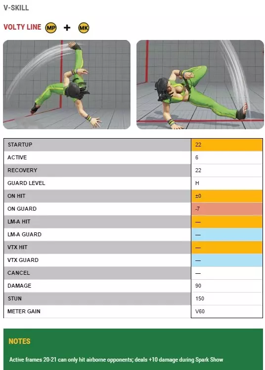 延长技能持续时间,能降低她受到惩罚的可能性。不过这在很大程度上取决于劳拉的起跳距离,以及对手的对空能力。 例如,春丽用站立姿势来格挡劳拉的跳入攻击可能会轻松得多。