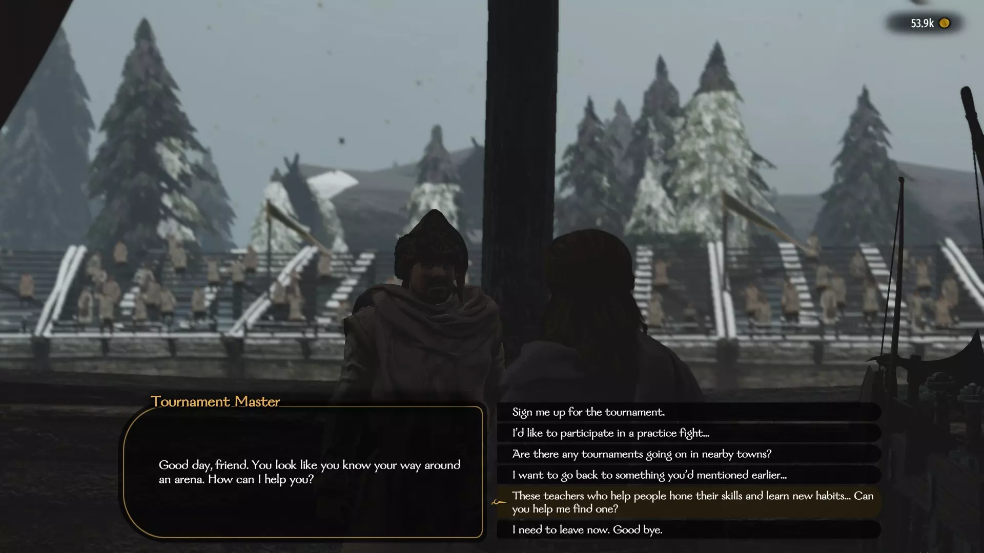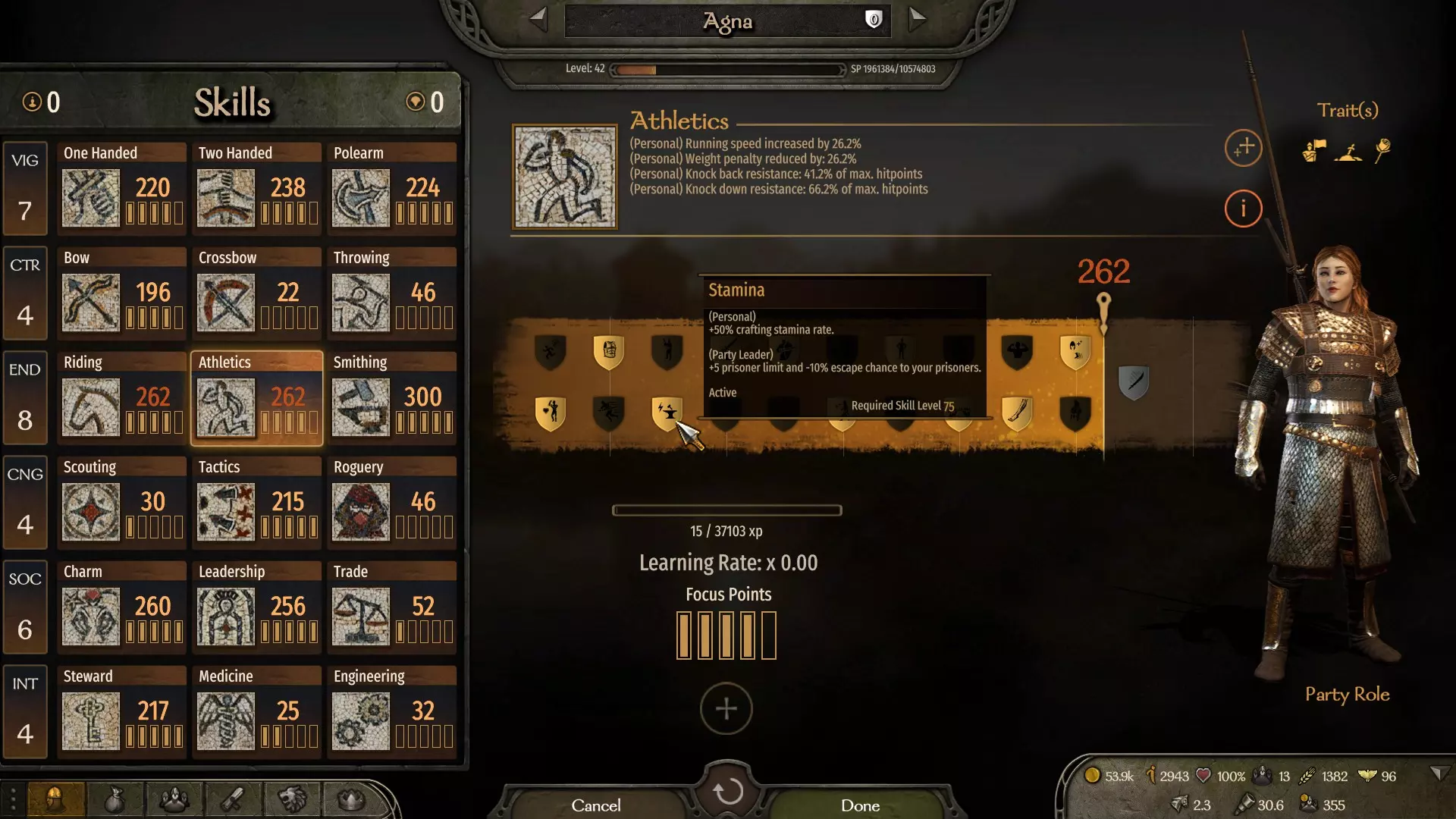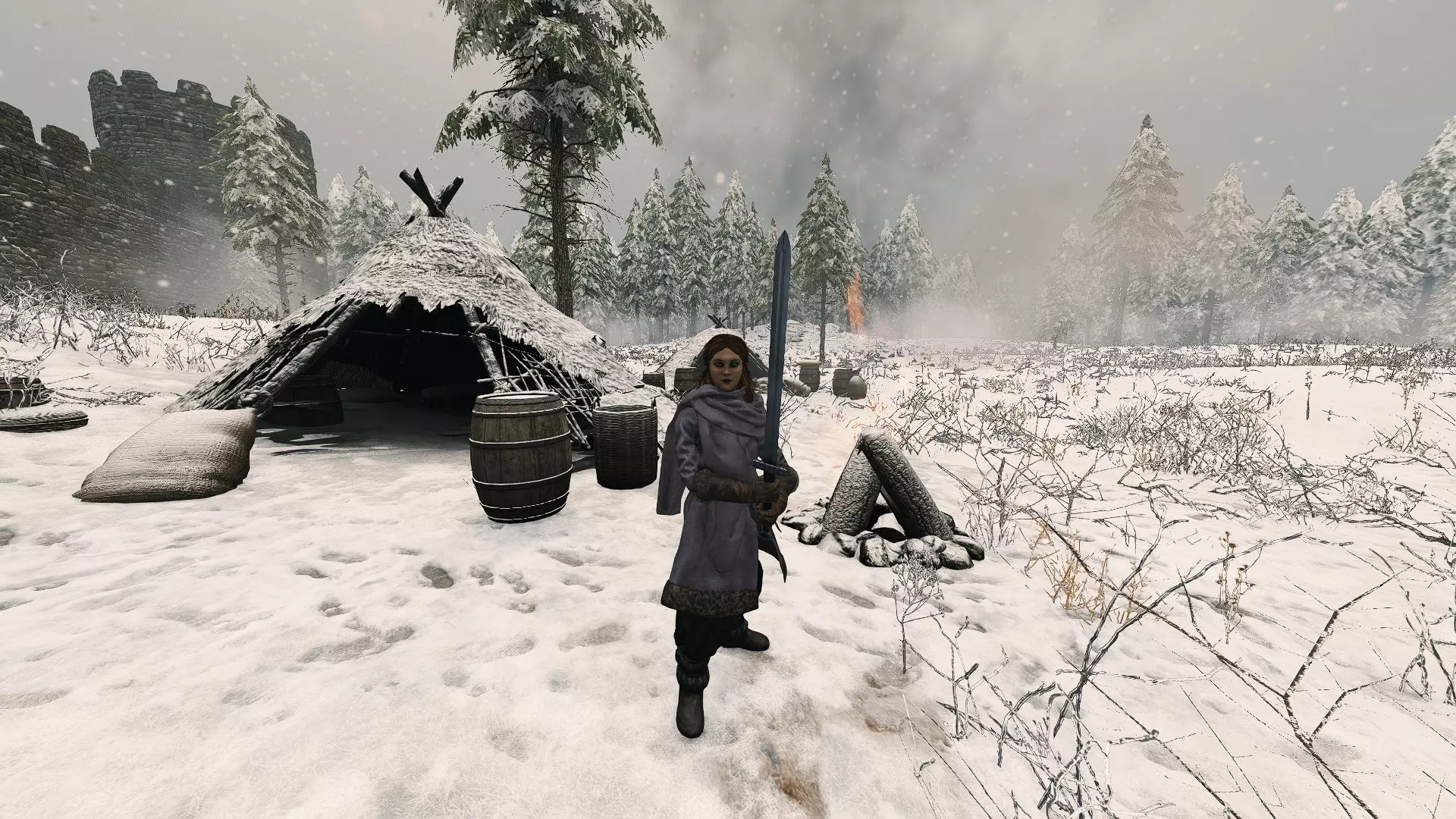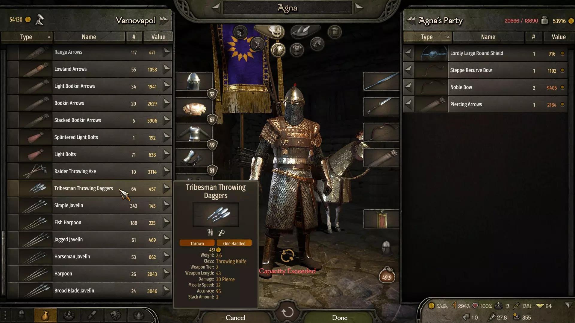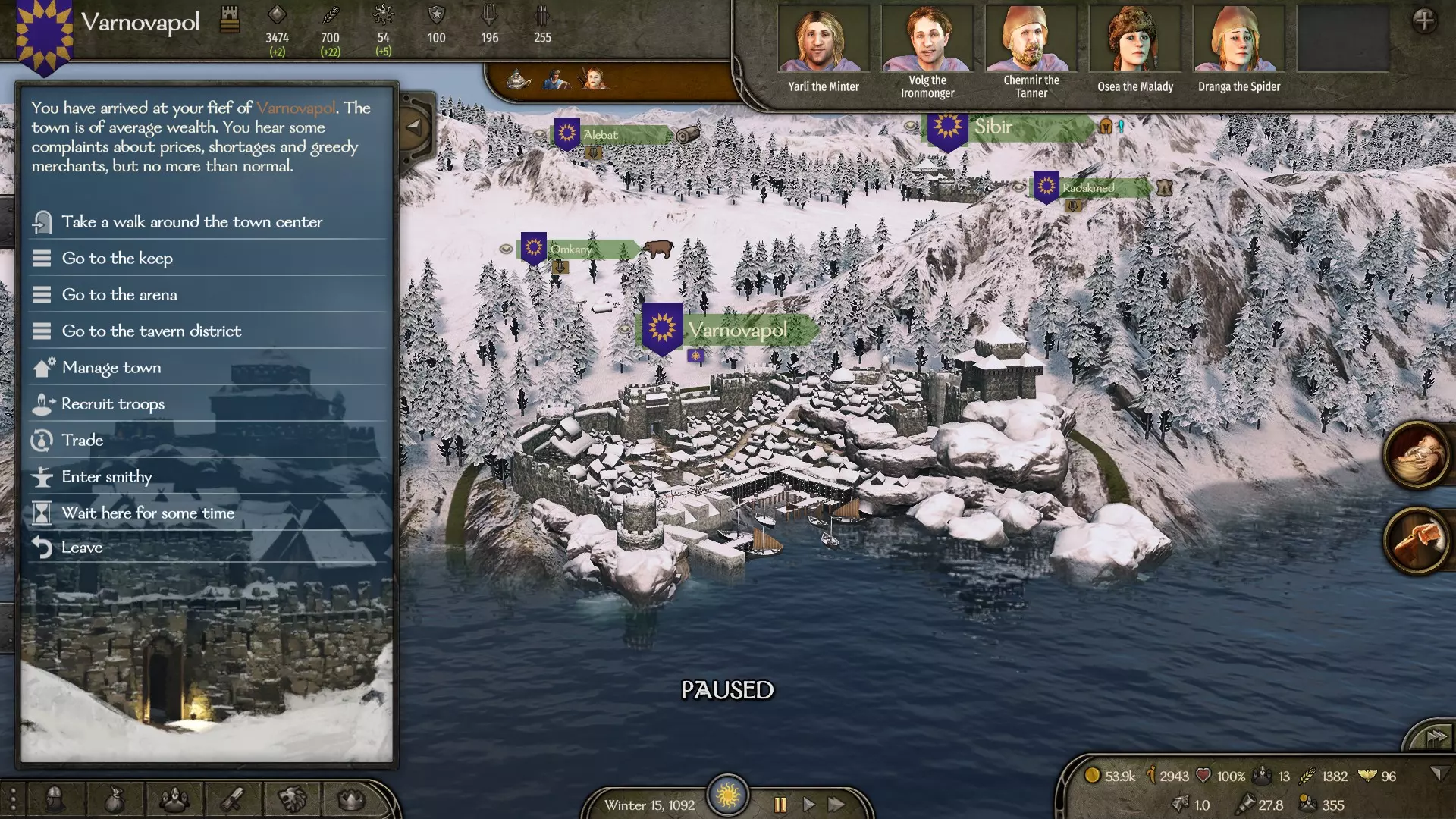 (同伴数量示例) 参与几场战斗后,我们将保留所有战利品武器(作为初始材料储备)。 拥有可自由分配的属性点和专注点,这些点数将专门投入到耐力和锻造技能上。 初始资金为40000第纳尔。完成上述步骤后,继续下一步。 确定我们将开展工作的城市(该城市附近最好有木工定居点)。 从其他城市/村庄收集木材(没有具体数量,越多越好)。