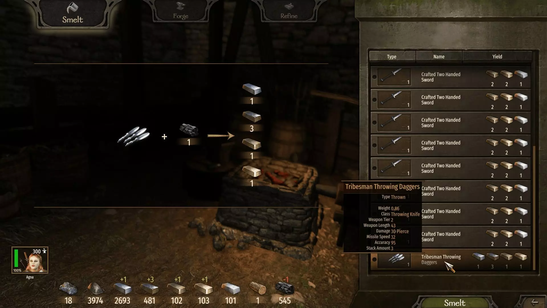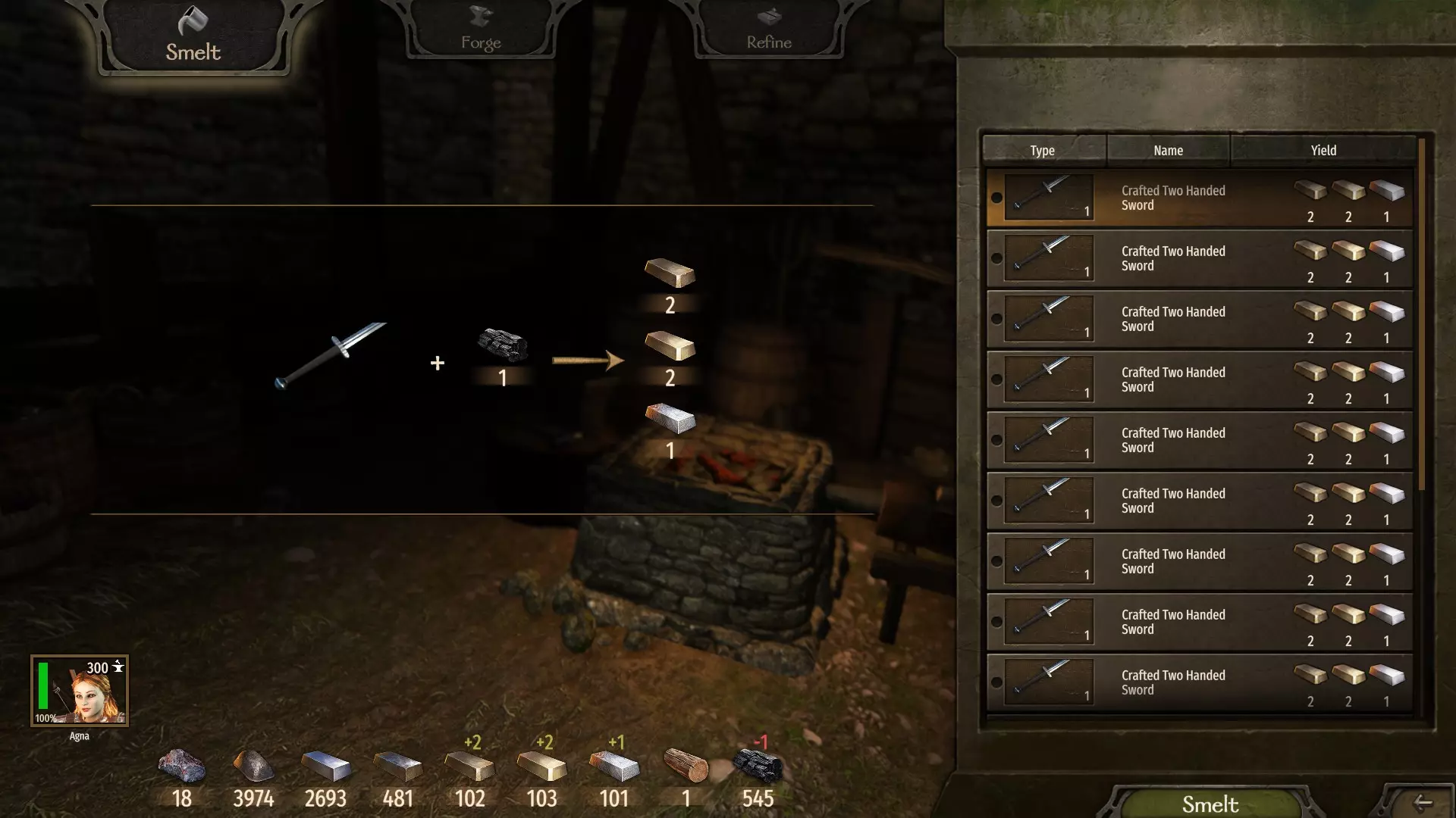 (与锦标赛大师的必要对话点) 主舞台 在选定的城市安顿下来后 我们首先让所有角色生产尽可能多的木炭。 接下来,我们熔掉之前战斗中获得的所有战利品武器,即使是昂贵的那些,因为它们能提供更多经验。 重点是打造双手剑。当你熔掉自己的双手武器时,许多其他类别的元素也会同时解锁。