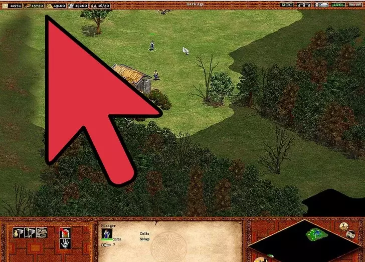 黑暗时代七步走 1 游戏开始时,需要快速连续执行以下步骤: 立即在城镇中心创建4个村民,消耗200食物。默认快捷键为【H】选择城镇中心,【C】创建村民(需先选中城镇中心)。最快的操作方式是按下H,然后按住Shift+C。Shift键可一次性选择5个单位。这可能是游戏中最重要的快捷键组合。 派两个村民建造两座房屋。这会暂时将人口上限提升至15,以便创建更多村民。不要让每个农民都各自建造小屋——他们应该两人一组,每次共同建造一座房屋,以保持稳定的人口增长。一旦两座房屋完工,就让这两名农民在森林附近建造一个伐木场(Lumber Camp)(你的侦察兵很可能已经发现森林了)。 用侦察兵探索周围区域。在黑暗时代,找到最初的4只羊是至关重要的——你越早找到它们越好。有时,其中一只羊可能在地图上清晰可见。如果出现这种情况,让你的侦察兵前往该动物处。这4只羊会被转化为你的颜色,之后你可以继续寻找另外4只(成对出现的)、位置更远的羊。通过这些搜索还能找到浆果、野猪、鹿(部分地图不可用)、金矿和石矿。让村民在城镇中心附近砍伐木材。