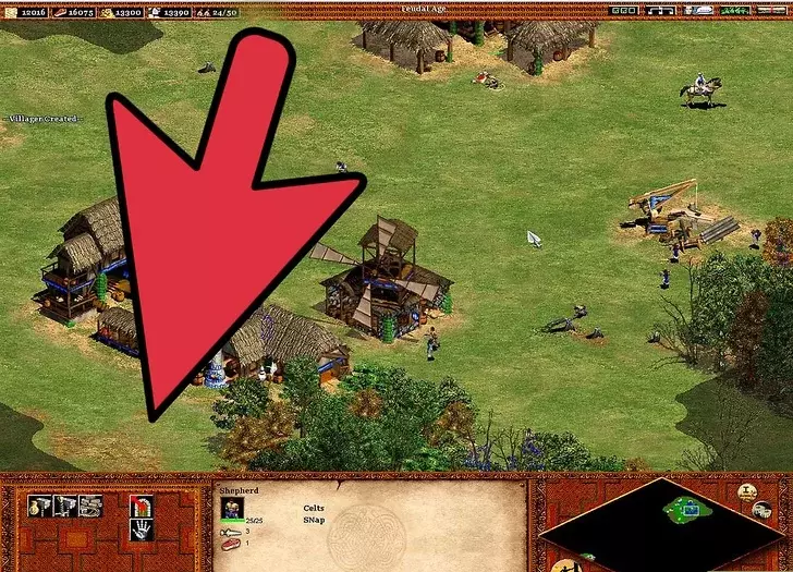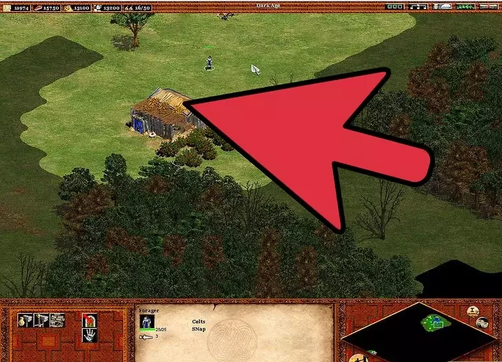 7 研究帝王时代。 没有特定的点击研究按钮的时间。假设你不急于发展并正在组建军事力量(除非在奇观竞赛模式,否则你的军事建设应处于发展中),你的目标是在25分钟内达到这一阶段。理想情况下,你的第一个城镇中心应用于研究,因为其周围的土地应该已经开发完成。在研究帝王时代期间,可以在另一个城镇中心研究手推车技能(独轮车是前置要求)。 你偶尔会忽略人口上限。在游戏进程中,应有一名农民持续建造房屋(不必一直是同一名农民)。