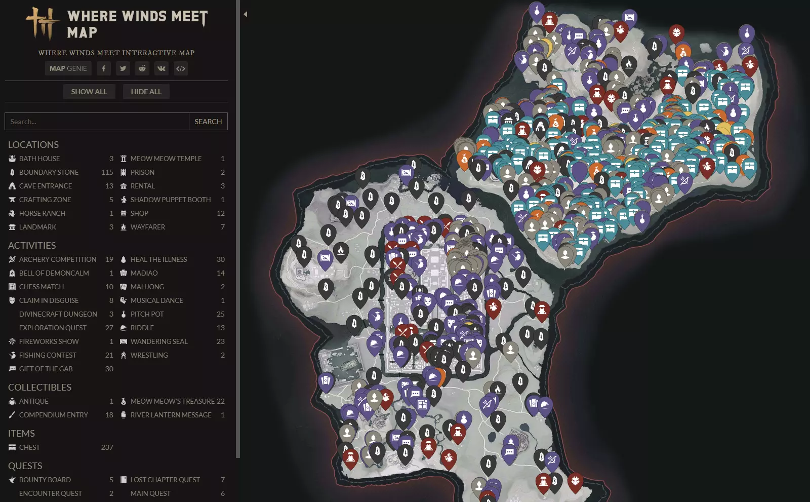 我为你呈现这个很棒的网站,专为想要达成100%完成度、寻找Boss、物品、资源、收集品、地点等内容的你而打造! 简介 如果你在寻找特定内容,可以使用筛选器中的高级搜索功能! 图片仅作演示,地图链接将在下方提供。如有任何问题,请在指南中发表评论,请注意礼貌!