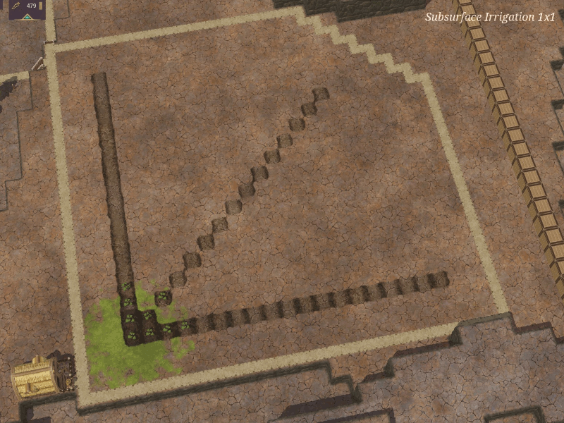 《Timberborn》地下灌溉方法 随着《Timberborn》在更新7中加入了完整的3D地形,现在你可以使用隧道进行地下灌溉了。你只需确保隧道内的水完全充满,直至达到隧道顶部。隧道内的平台无关紧要,因为它们是透水的。 现在你无需再依赖明渠或隐藏在道路、建筑物下方的渠道。这意味着你可以将这些渠道所占用的空间改用于种植园。通过这种方式,你还可以防止这些区域因明渠而意外被淹没。地下也会发生蒸发,你可以理解为水分渗入了地下。以下是一些水体位于地面下一格时,对上方灌溉影响的截图。这些是循环播放的GIF动图,会展示地表以及地表下第一层和第二层的情况。