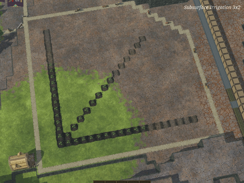 在地表下方有3x2大小的水块时,将额外灌溉约11个地面方块。这应导致总共约23到24个方块的灌溉直径。此直径也适用于任何宽度为2方块且更长的灌溉隧道。