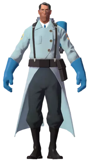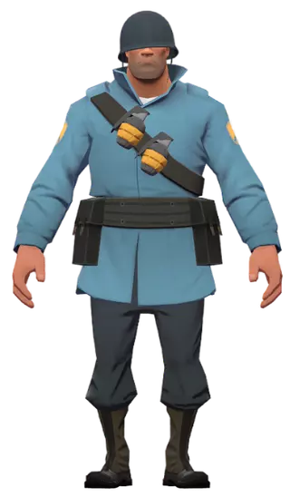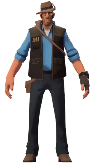 参考姿势通常被称为“平民”。它会让玩家处于无动画、不使用武器的“参考姿势”状态。此状态不会改变玩家的实际职业,因此生命值、移动速度以及该职业的所有特殊能力(例如侦察兵的二段跳)均不受影响。 在“Meet the Sniper”中,右侧可以看到平民(经典版)的夸张形象。 ・侦察兵