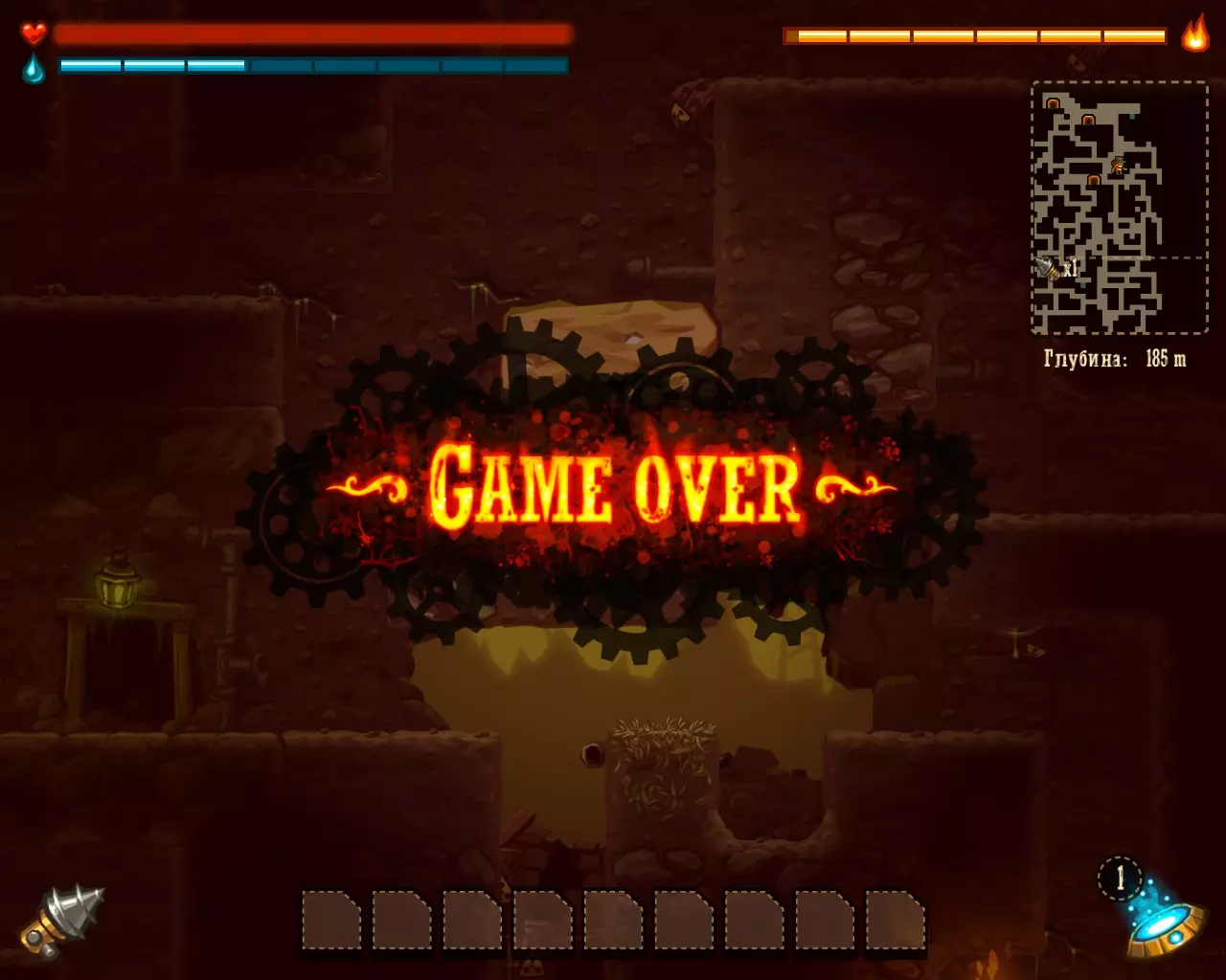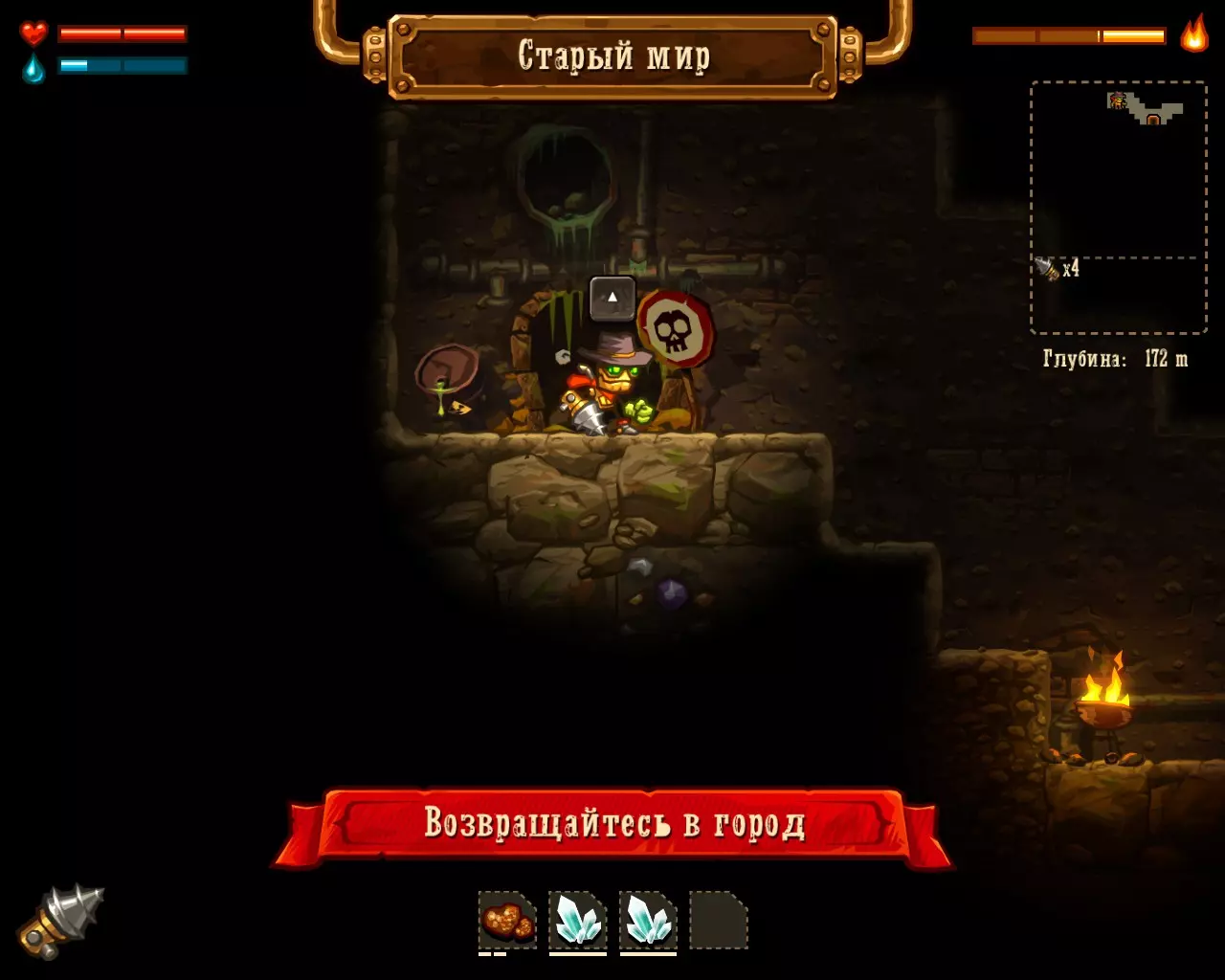 就像在现实生活中一样 完成游戏,且一次都没有死亡。 不要着急,一切都会成功的。 此外,这个成就是与【Master-rudokop】相关联的。 在这种情况下,有两种获得它的方法: 作为一名真正的硬核爱好者,可以利用额外的一周时间和紧张的情绪,一口气通关。如果你死亡并看到“Game over”字样——使用Alt+F4组合键,或者最小化游戏后,通过任务管理器结束SteamWorld Dig进程。此操作将允许您【回滚】到最近的存档。