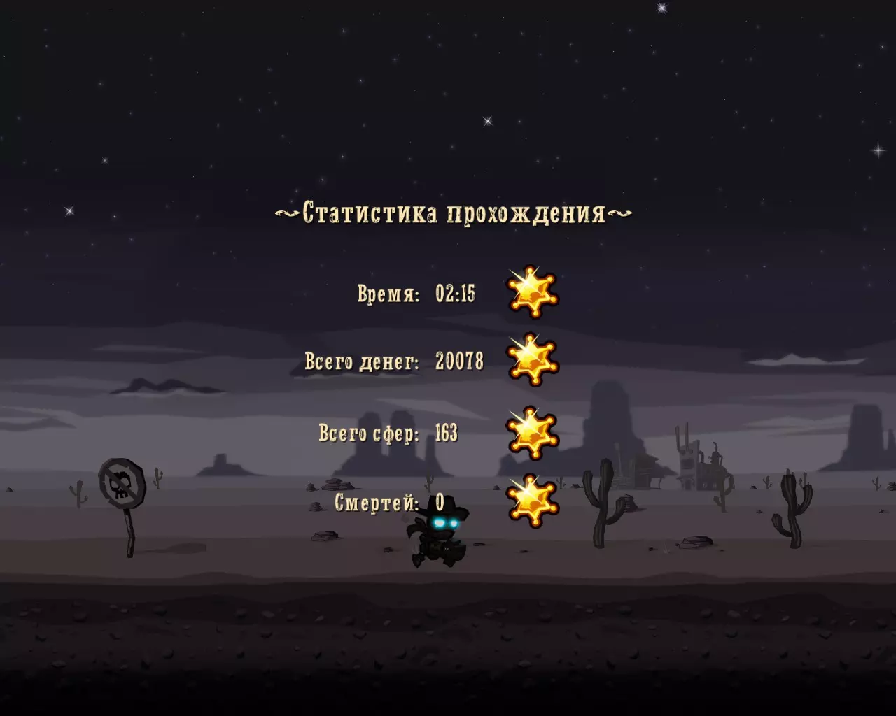 后记 [(O_-_O)] 我们这场穿越机械风格、后启示录、机器人化、动画风格的2D工业西部世界的旅程,到此就结束了。:)