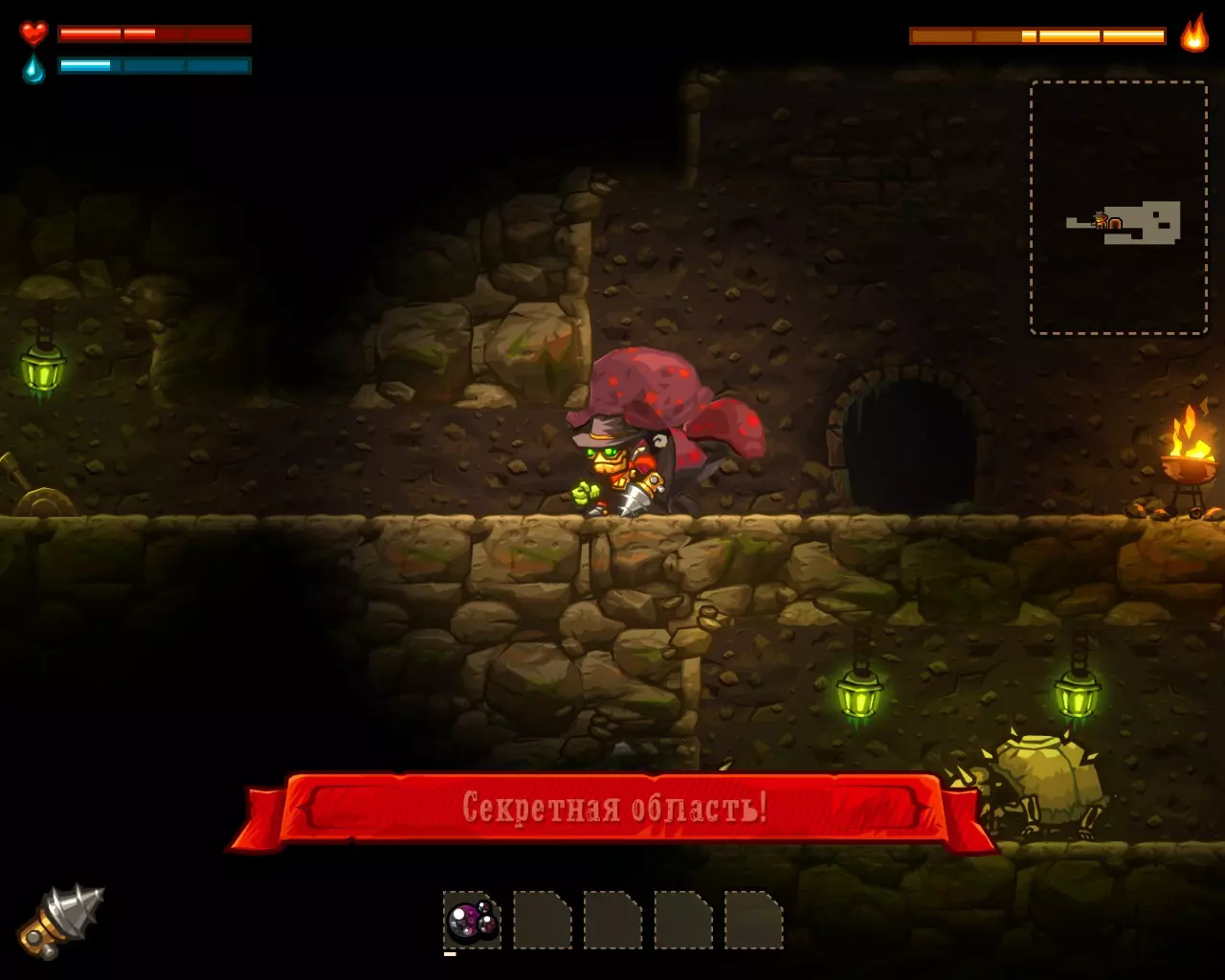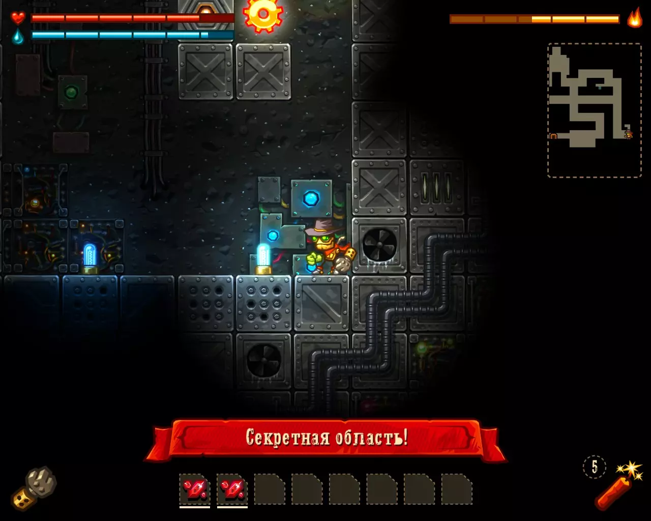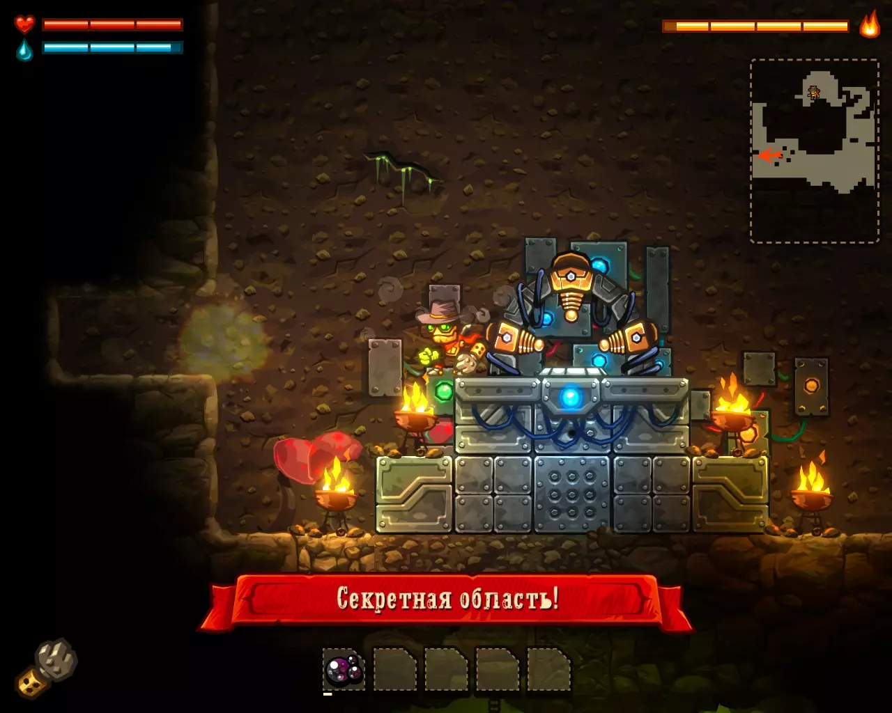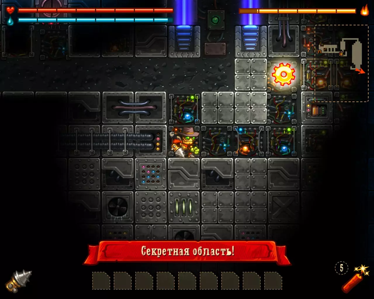 内置功能: 实现了品牌蒸汽机器人的不死效果。 完成游戏。 注意! 在与 boss 战斗时,使用手套会更有效——对冷却元素只需 3 次攻击即可。