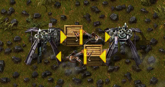请注意,采矿钻机完全为彼此充满燃料储备需要略少于3分钟。充满后,钻机将处于闲置状态,直到积累的煤炭被清除。如果钻机将煤炭倾倒到缓冲槽而非直接倒入另一台钻机的燃料箱中,可以延长这一时间。