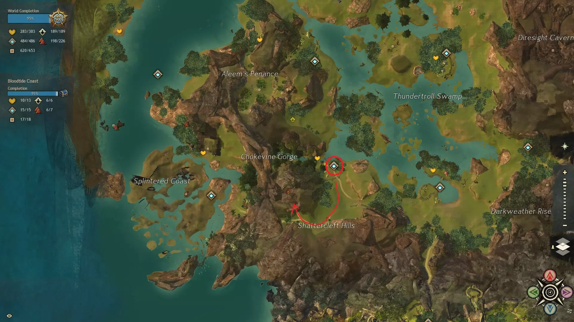 泰瑞亚地区所有自由专精点获取指南。中央泰瑞亚专精洞察点及其位置。本指南将汇总隐藏在泰瑞亚最偏远和黑暗角落的所有专精点。包含传送点及其他注意事项。大家好,在我的技能收集指南中,将为大家展示游戏中的传送点(Waypoints),它们可以让你直接传送到指定地点,无需额外操作和麻烦。此类链接的示例如下:【&BF8JAAA=】。使用该链接时,只需将方括号中的内容复制粘贴到聊天框,即可打开传送点,无需在地图上自行寻找,这是一个非常实用的功能,建议大家使用。另外,我会按步行顺序展示通往大师级的路径,因为这类路径数量不多,但没有坐骑的玩家依然存在,请保持冷静,不要对“可爱的红色箭头”发脾气。 血潮海岸