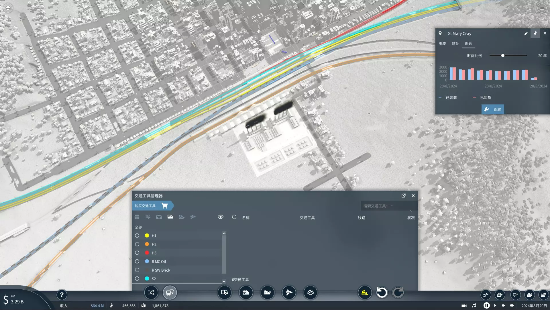 作为一款交通模拟游戏的标杆之作,《狂热运输2》要求玩家规划大量公共交通线路以助力城市发展,但线路图很容易变得混乱。以下是我个人的一些交通线路编号规则和规划原则,它们帮助我更好地管理公共交通。 本指南提供了一套使用字母A、B、F、G、H、L、M、N、Q、R、S、T来标识交通方式的线路编号系统。但请注意,这些规则的设计初衷只是为你的交通帝国服务。如果某些情况下打破规则效果更好,那就打破它们。此外,这里还提供了一些规划建议供你参考。1. 道路车辆 - 市内公交车:用字母“L”表示市内公交线路,这是最基本的交通方式。 - 本指南中,【CT】代表线路所服务城市名称的缩写,【#】代表单个或多个顺序编号,若城市仅有一条公交线路,编号可省略。 - 例如:L SH 1代表上海(或其他缩写为SH的城市)的第一条市内公交线路;L NB 14代表宁波(或纽伦堡)的第14条市内公交线路;L HZ代表杭州唯一的公交线路。 - 市内公交车站之间的建议间距不小于400米(约4个AI建筑街区)。 - 城际公交车有单独的字母标识。G*CT*Cargo#:G代表货运卡车线路,因其运输货物(Goods)和货物(Cargo)。*CT*是产业链最终服务的城市名称缩写。Cargo指线路运输的货物。#代表单个或多个序号,若只有一条卡车线路为工厂或城市供应货物,此序号可省略。例如,G SH Tool 2代表为上海供应工具的第二条卡车线路。 B#:BRT(城际巴士)。BRT实际上是一种巴士。平均站间距比常规巴士长,或连接交通枢纽、旅游景点、不同城镇等偏远地区重要地点的巴士线路,通常被称为快速公交系统(BRT)。因此,在《运输大亨2》中,BRT(快速公交系统)通常等同于城际公交线路,使用BRT来表示这一概念通常更为简便。BRT线路有时会使用高架桥和专用公交道。 建议BRT线路与市内接驳公交线路共享1至3个站点,以便乘客换乘,同时避免造成城市内过多的交通拥堵。 与公交线路类似,城市内唯一的市内有轨电车线路编号中会包含#,而城际有轨电车线路编号中会包含*CT*。例如:T1、T SH 9。《运输大亨2》中的有轨电车线路通常由公交线路升级而来,包括市内线路和城际线路。因此,所有针对公交线路的规划建议同样适用于有轨电车线路。2 铁路车辆 R *CT* *Cargo* # 普通列车 字母R代表普通列车线路,这是最基本的铁路运输形式。 若只有一条卡车线路为工厂或城市供应货物,客运列车线路会经过*CT* *Cargo*,货运列车线路会经过#。 例如:R9、R NB Food 2。 普通列车通常每个城镇停靠一次。如果相邻城镇距离过远,建议使用高速列车并部分修建高速铁路。 市郊列车和高速列车有各自的标识字母。 S# 市郊列车 市郊列车通常在小城镇停靠一次,在大城市停靠两次,但很少在一个城镇停靠三次及以上。当为一个大型城镇停靠两次时,两个车站应位于城镇的不同侧。 郊区线路使用普通列车和铁路。 高速列车通常只为大型城镇停靠一次,不为小型城镇停靠。有时甚至需要新建车站,以避免高速线路过度弯曲。 高速列车需要高速铁路。