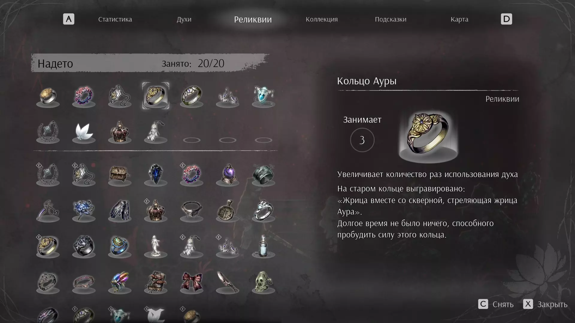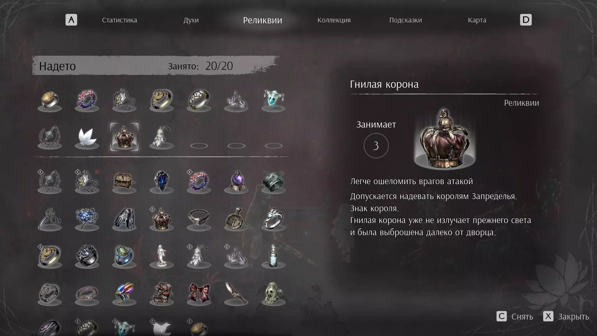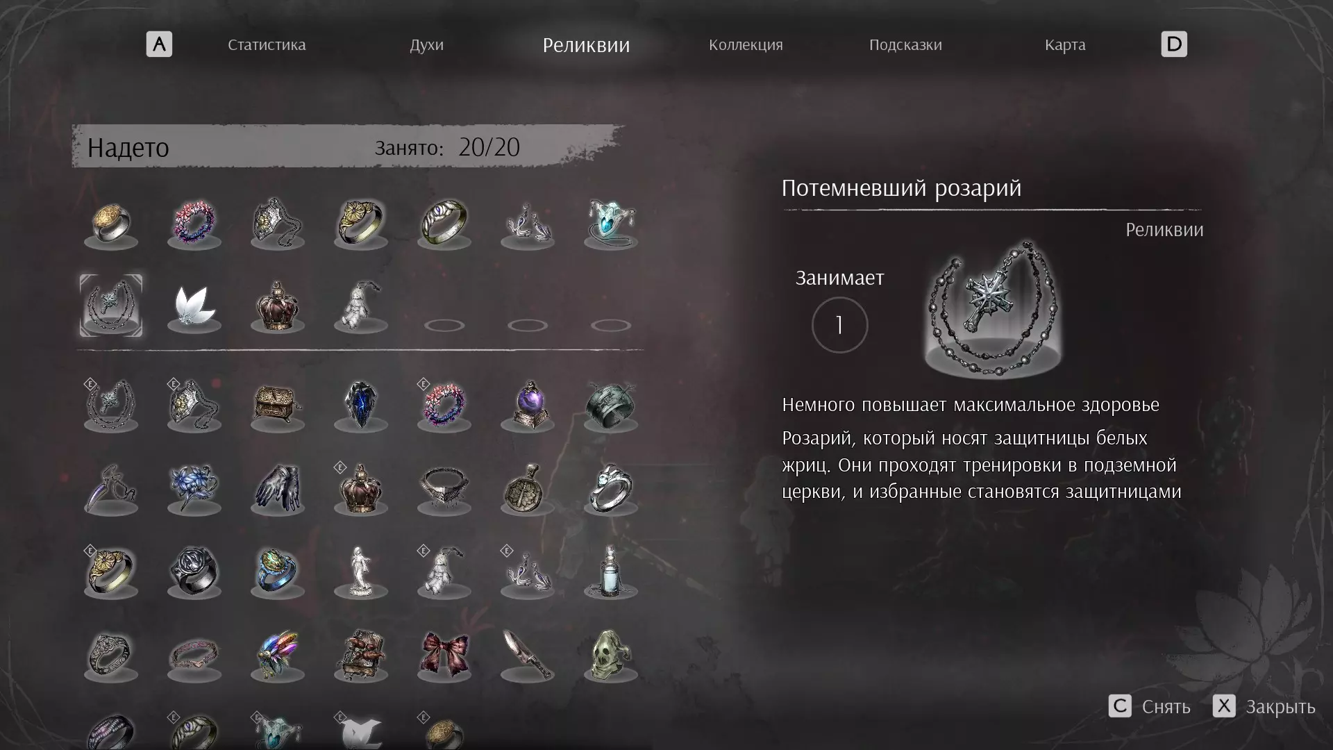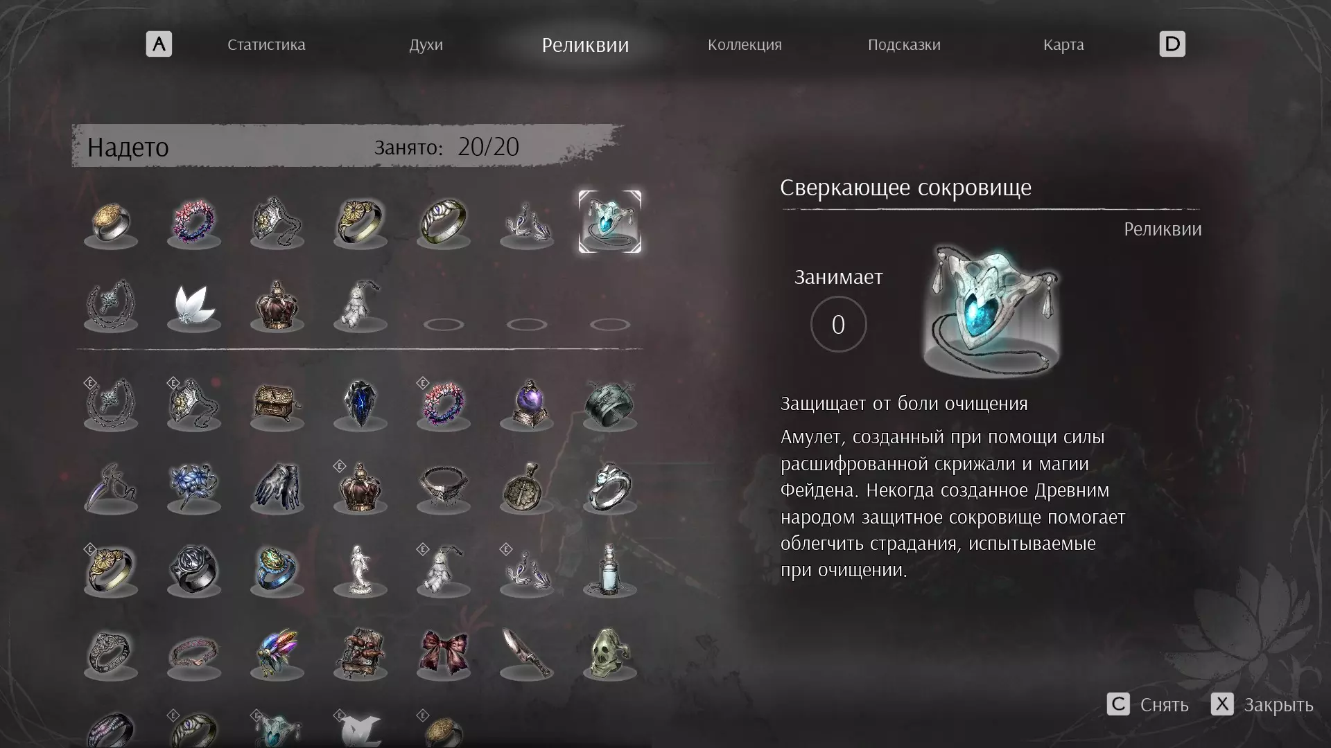 轻松击杀最终 boss 污秽之王的配装准备工作 首先需要为战斗做好准备,具体如下: 找到所需的遗物 将所需的灵魂强化到极限 找到所有链条 找到所有护符碎片 如果找不到灵魂或装备,可以查看Steam中的指南部分,那里有相关的地图 构建流派(遗物) 首先需要装备所有所需的遗物: