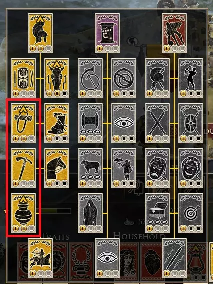 斯基泰传奇 使用单个角色习得【犁与轭】、【斧】和【碗】技能。 扮演游牧部落(罗科索拉尼、马萨格泰或皇家斯基泰),并在升级时选择黄色的权威技能。每个技能只需投入一点。这要求将领等级至少达到6级。
