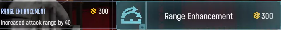 将射速提高一倍,同时将伤害降低一半。尽管这项技术不会提高每秒伤害(DPS),但狙击手的效率仍可能提升。这项技术会减少小型单位对狙击手的影响,因为对它们的伤害分配会更加有利。 射程强化