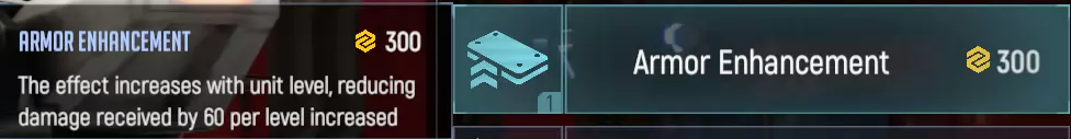 增加200%伤害。这项强大的技术能让初始伤害较低的电弧光塔以极高效率摧毁T2单位。如果计划通过电弧光塔发展战略,这是优先选择。【Armor Enhancement】
