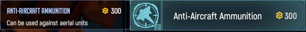 每级减少60点受到的伤害。最小伤害为1。即,1级拥有此科技的单位受到100点伤害时,实际只会受到40点伤害;若受到50点伤害,则实际受到1点伤害。该科技使【电弧光】能够忽略【野马】造成的伤害,并削弱【芬格】和【爬行者】造成的伤害,从而在此类单位面前获得更大优势。 【防空弹药】