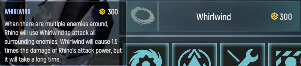 增加基础移动速度5点,降低攻击间隔0.2秒。请注意,犀牛的实际攻击间隔将为0.6秒,而非0.5秒。 这项对犀牛而言重要的技术能让它更快抵达目标位置,在途中击溃敌人。 Field Maintenance