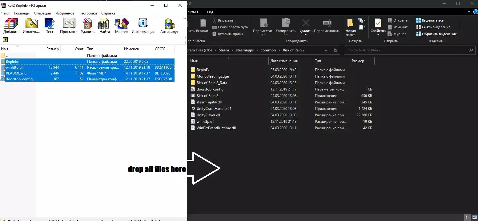 现在前往《雨中冒险2》文件夹并在此解压所有压缩文件